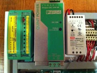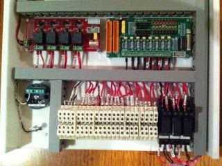 I have finally got around to assembling my new control panel. I have not fired it up yet however just completed 90% of the wiring. Picture tell 1000 words http://img.photobucket.com/albums/v319/rjconway/ControllerR0-1.jpg http://img.photobucket.com/albums/v319/rjconway/ControllerR0-3.jpg http://img.photobucket.com/albums/v319/rjconway/ControllerR0-4.jpg http://img.photobucket.com/albums/v319/rjconway/ControllerR0-2.jpg I have tried hard not to have to build any of the IO interfaces as I did not want a lot of DIY electronics. I will have a minor mod on the 4 channel relay board to convert it into a 4 channel pwm output by simply replacing the relays with FETs. I have used Opto isolated IO as I want this to be as reliable as I can make it. The control panel is for my new Aquarium. This panel is only switching low voltage devices 12 and 24VDC. The control panel has the following capabilities at the moment 16 Digital outputs 8 Digital Inputs 2 pulse inputs 6 analog inputs 4 PWM outputs Devices installed on the control panel from left-to-right / Top-to-bottom, refer to pics above BAE911 with Relay 24VDC power supply 12 VDC power supply Power distribution terminals I2C to digital converters 2 off piggyback on top of each other 8 channel relay board (Opto Isolated) 4 channel relay board which I shall take out the relays and fit some FET's for PWM output (Opto Isolated) 8 channel digital input 5VDC or 12/24VDC inputs (Opto Isolated) RTD transmitters used for two temperature measurements (Still missing one unit) (4-20mA over 250ohm = 1-5VDC outputs) Terminals Relays used as Hardwired failsafe