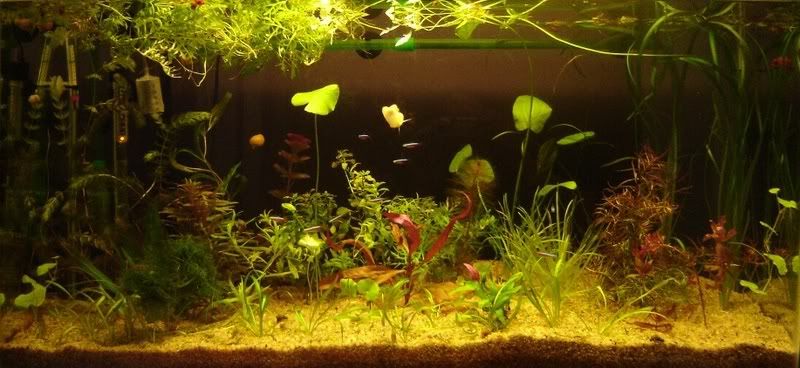 Néstor D. Groel http:\\www.sadelplata.org De: [email protected] [mailto:[EMAIL PROTECTED] En nombre de Fernando Pucheta Enviado el: Viernes, 27 de Julio de 2007 09:49 a.m. Para: [email protected] Asunto: [aquaplanta] Mi nuevo acuario plantado :D Buenas Gente: Después de tanto caminar, por fin tengo casi listo mi nuevo acuario. Desde ya agradezco a Diego, Maxi, Eduardo, lichoac y panza por las plantitas, podas y caracoles, que sin ellos, no hubiera conseguido ni la 4ta de lo que hay en el acuario. La tapa todavia no la terminé de instalar, espero esta semana tenerla y sacar nuevas fotos. Ahora está iluminado con un tubo Osram 827 de 18W, y por eso las fotos salieron medio amarillas. El acuario está andando desde hace 1 semana aproximadamente. Medidas del acuario: 88x33x50 (145lts brutos). Iluminación (futura): 1 Osram Fluora de 18W 1 Osram 954 de 18W 2 lamparas bajo consumo Osram 840 de 20W (estas dos las voy a poner si es necesario) CO2 con levadura, y como reactor una campana invertida (jeringa), porque hice un contracorriente, pero no puedo conectarlo todavia, porque la válvula antirretorno que tengo es muy dura para el sistema de levadura, o pierde por algún lado. Filtro Externo de 800lt/h. Sustrato de Arena N°12 por arriba y Arena N°12 + Laterita por abajo. Peces: 5 Otocinclus (Affinis?) 12 Tetra Cardenal (Paracheirodon axelrodi) Caracoles: Varios Manzana (Pomacea bridgesii) Varios Planorbis Rojo varios Melanoides Tuberculata Ah, y había un individuo, que como no lo conocía, lo saqué, por las dudas, pero me pueden decir que es? Tenia aprox. 3mm y atrás una solita que la sacaba y la metia. Acá está su ultima foto: [img]http://i2.photobucket.com/albums/y35/jajaito/DSC05775-2.jpg[/img] Plantas: Y bueno, acá me van a tener que ayudar, por favor, porque me faltan bastantes nombres. Pongo los que conozco (o me parecen :D), con el numero del esquema de la segunda foto. No conozco mucho de plantas, pero me guio por las fotos, así que puede ser que diga cualquiera, eh? :D A medida que me vayan diciendo, voy editando este mensaje con los nombre reales. Acá hay una foto general: http://i2.photobucket.com/albums/y35/jajaito/DSC05747-sm.jpg y acá una con los numero para referenciar a las plantas http://i2.photobucket.com/albums/y35/jajaito/DSC05747-sm2.jpg 1-Ceratophyllum demersum? Me la vendieron como de agua fria, per igual la compré :D Había como dos variedades, una mas tupida y obscura y otra menos tupida y mas clarita. Creo que a esto le llaman pinito, o algo asi. 5-Vesicularia dubyana (Musgo de Java) 6- Sagittaria subulata? 7-Ludwigia glandulosa? Se parece, pero no se. 8-Hydrocotyle. No se que varierdad, pero creo que es Hydrocotyle. 11-Hygrophila polisperma 13- Esta pareceria una sagittaria, pero no se. Quisiera que me saquen de una duda que tengo, que no se si es una planta de acuario. La compré en Itchtys. 14-Gymnocoronis spilanthoides? Mientras mas plantas veo, mas se parecen todas :D 16-Echinodorus cordifolius? No se, creo que es una Echino, pero no se. Es parecida a la codifolius o a la grandifolius, pero vi que ambas son bastante grandes. Es mas, ya hoja que ven mas alta, que llega a la superficie, creció 15cm en 1 semana :p 17-Mayaca? 18-Ceratopteris thalictroides? (Helecho de Sumatra). Este no es tan ramificado, pero quizás me equivoco, y es otra variedad de helecho. 19-Rotala macrandra 21-Bacopa caroliniana :D Y bue, el resto y la corrección de estas se las dejo a ustedes. En vez de un acuario, parece un catálogo de plantas :p. Quizás para darle una esquema mas prolijo, tendría que haber elegido menos especies, pero la verdad que con todas las que me regalaron, y son todas muy lindas, y la idea es ir viendo como se desarrollan, y en base a eso ir replantando, replanteando, y remodelando. Acá pueden ver otras fotos, algunas de cada planta, y también una general grande: http://s2.photobucket.com/albums/y35/jajaito/ Bueno, espero que no se hayan cansado de leer, escucho criticas, ideas, quejas, todo lo que quieran :D Salu2 para to2 Fernando __________________________________________________________ ¡Sé un mejor asador! Aprendé todo sobre asados. http://ar.yahoo.com/promos/mejorasador.html [Non-text portions of this message have been removed] Yahoo! Groups Links <*> To visit your group on the web, go to: http://groups.yahoo.com/group/aquaplanta/ <*> Your email settings: Individual Email | Traditional <*> To change settings online go to: http://groups.yahoo.com/group/aquaplanta/join (Yahoo! ID required) <*> To change settings via email: mailto:[EMAIL PROTECTED] mailto:[EMAIL PROTECTED] <*> To unsubscribe from this group, send an email to: [EMAIL PROTECTED] <*> Your use of Yahoo! Groups is subject to: http://docs.yahoo.com/info/terms/