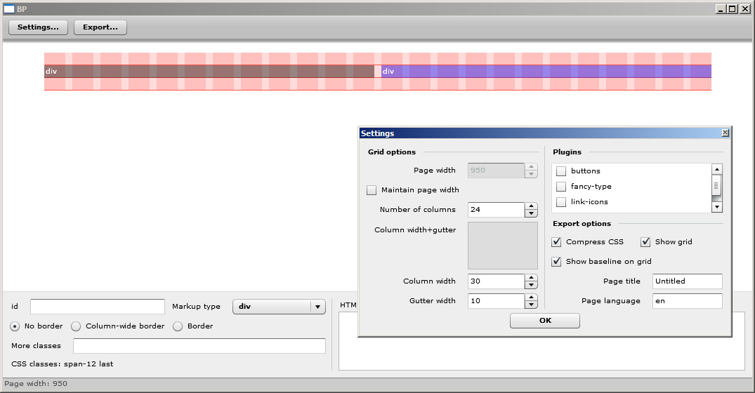 On Tue, Mar 17, 2009 at 9:32 AM, Quentin <[email protected]> wrote: > > Update! > I now manage plugins: > http://toki-woki.net/stock/blueprint-wysiwyg/05-plugins.jpg > No more "tools": click to select, click and drag to draw a box. > Redesign of the settings window. This one will probably change > again... > > Next: typography and baseline rythm options... > And that should be it! > > I'll keep you updated of course. > > On Mar 16, 4:38 pm, "~" <[email protected]> wrote: > > Wow. Great. Please keep up working on it. : ) I would like to use it > > sometime. > > > > Steve > > > > On Mon, Mar 16, 2009 at 4:20 AM, Quentin <[email protected]> wrote: > > > > > Even if this discussion/group is not very active I'd like to post some > > > updates/screenshots on the evolution of the app! > > > Images first: > > > > > - Here's what the app looks like right now: > > >http://toki-woki.net/stock/blueprint-wysiwyg/03-settings-boxbar.jpg > > > - Here what the generated page (HTML+CSS+grid.png) looks like: > > >http://toki-woki.net/stock/blueprint-wysiwyg/04-export.jpg > > > > > Of course this is all based on Blueprint... > > > Thoughts? > > > > > Still looking for 2 or 3 (or more) bĂȘta testers! > > > Bye! > > > > > On Mar 12, 3:31 pm, Quentin <[email protected]> wrote: > > > > Hi there! > > > > I've just posted some screenshot to show you what it's currently > > > > looking like and to eventually grab some feedback and directions... > > >http://toki-woki.net/stock/blueprint-wysiwyg/ > > > > > > The "sorting/placing" algorithm is OK, I will now go on and work on > > > > the box type (tag), content and attributes! Then will come the CSS/ > > > > HTML export... > > > > > > Hope some of you will want to use it! > > > > Bye! > > > --~--~---------~--~----~------------~-------~--~----~ You received this message because you are subscribed to the Google Groups "Blueprint CSS" group. To post to this group, send email to [email protected] To unsubscribe from this group, send email to [email protected] For more options, visit this group at http://groups.google.com/group/blueprintcss?hl=en -~----------~----~----~----~------~----~------~--~---