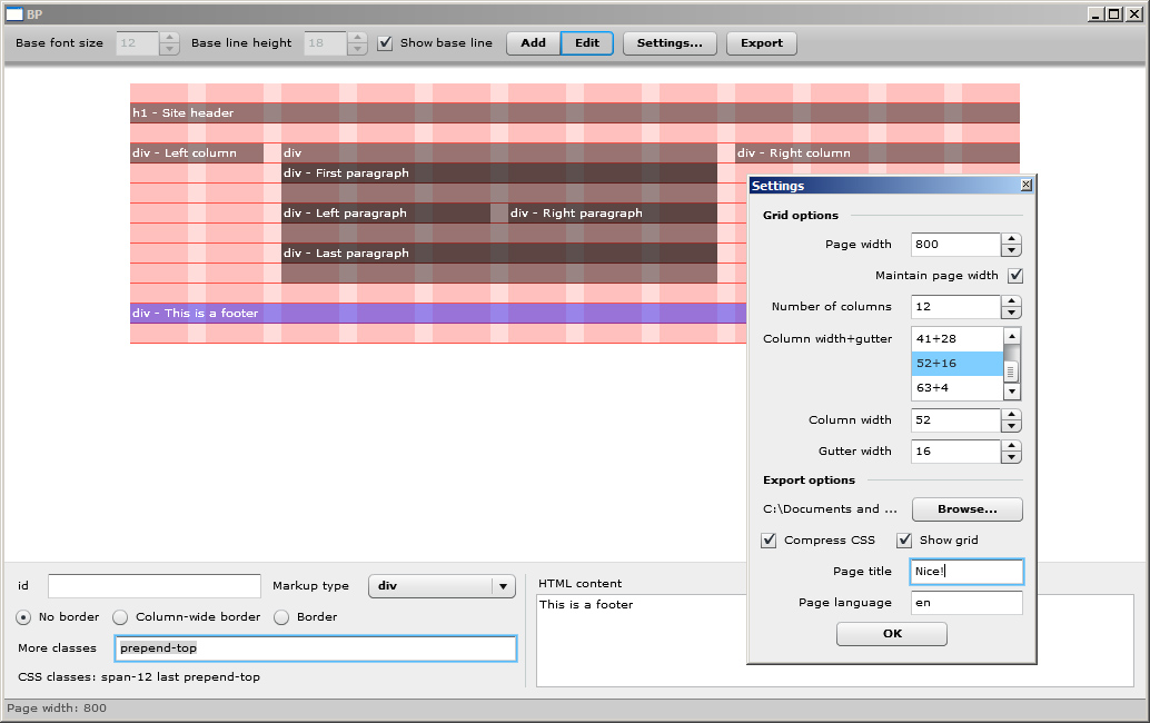 On Mar 18, 3:54 pm, Quentin <[email protected]> wrote: > Sorry folks, I only picked the first 5 guys who asked for it in the > thread! Namely Brent Hardinge, Forrest, "~", Al Sessions and > [email protected] > I will probably send them a version this week... > > But don't worry, the app is not ready for prime time but will soon! > Glad to see some are intersted in it. > > Just to let you know, I chose a name. The app will be called Boks! > See y'all! > > On Mar 18, 2:13 pm, Hans Pinckaers <[email protected]> wrote: > > > > > Could you add me too, really interested in this app. > > > On Mar 18, 1:19 pm, Brent Hardinge <[email protected]> wrote: > > > > Feel free to add me to your tester list. I would love to try it out. > > > > - Brent > > > --------------------------------------------------------- > > > Design / Interaction / Strategyhttp://brenthardinge.net > > > --------------------------------------------------------- > > > > On Wed, Mar 18, 2009 at 2:37 AM, Quentin <[email protected]> wrote: > > > > > Update! > > > > Here's what the settings window now looks like: > > > >http://toki-woki.net/stock/blueprint-wysiwyg/06-settings-redesign-bas... > > > > > As you can see I now handle baseline rhythm options! > > > > Next on my to-do list: implement that "border" radio buttons that have > > > > been sitting in the UI for a while... > > > > > Also working on a FAQ and gathering email addresses to send some of > > > > you guys a preview version! > > > > Check! > > > > > On Mar 17, 3:26 pm, [email protected] wrote: > > > >> Very cool. I would love to try it. > > > > >> On Mar 16, 4:20 am, Quentin <[email protected]> wrote: > > > > >> > Even if this discussion/group is not very active I'd like to post > > > >> > some > > > >> > updates/screenshots on the evolution of the app! > > > >> > Images first: > > > > >> > - Here's what the app looks like right > > > >> > now:http://toki-woki.net/stock/blueprint-wysiwyg/03-settings-boxbar.jpg > > > >> > - Here what the generated page (HTML+CSS+grid.png) looks > > > >> > like:http://toki-woki.net/stock/blueprint-wysiwyg/04-export.jpg > > > > >> > Of course this is all based on Blueprint... > > > >> > Thoughts? > > > > >> > Still looking for 2 or 3 (or more) bêta testers! > > > >> > Bye! > > > > >> > On Mar 12, 3:31 pm, Quentin <[email protected]> wrote: > > > > >> > > Hi there! > > > >> > > I've just posted some screenshot to show you what it's currently > > > >> > > looking like and to eventually grab some feedback and > > > >> > > directions...http://toki-woki.net/stock/blueprint-wysiwyg/ > > > > >> > > The "sorting/placing" algorithm is OK, I will now go on and work on > > > >> > > the box type (tag), content and attributes! Then will come the CSS/ > > > >> > > HTML export... > > > > >> > > Hope some of you will want to use it! > > > >> > > Bye! --~--~---------~--~----~------------~-------~--~----~ You received this message because you are subscribed to the Google Groups "Blueprint CSS" group. To post to this group, send email to [email protected] To unsubscribe from this group, send email to [email protected] For more options, visit this group at http://groups.google.com/group/blueprintcss?hl=en -~----------~----~----~----~------~----~------~--~---