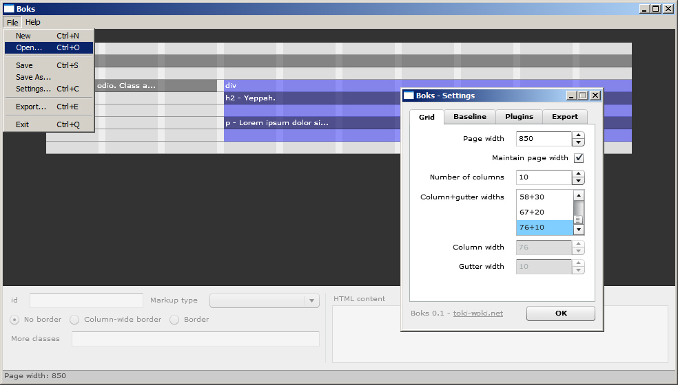 Here's what it looks like: http://toki-woki.net/stock/blueprint-wysiwyg/07-native-menu.jpg Still needs some polishing! I will rethink the plugin philosophy and try to make it look nicer... Still have to make those icons, too. Bye! On Mar 20, 3:21 pm, Quentin <[email protected]> wrote: > I'm afraid there's some mixed discussion in this thread! > How did that "reset side" talk end up here? > > On Mar 20, 12:12 pm, Quentin <[email protected]> wrote: > > > > > Did you (5) guys get my e-mail with the pre-release version? > > Still no feedback? > > > On Mar 18, 3:54 pm, Quentin <[email protected]> wrote: > > > > Sorry folks, I only picked the first 5 guys who asked for it in the > > > thread! Namely Brent Hardinge, Forrest, "~", Al Sessions and > > > [email protected] > > > I will probably send them a version this week... > > > > But don't worry, the app is not ready for prime time but will soon! > > > Glad to see some are intersted in it. > > > > Just to let you know, I chose a name. The app will be called Boks! > > > See y'all! > > > > On Mar 18, 2:13 pm, Hans Pinckaers <[email protected]> wrote: > > > > > Could you add me too, really interested in this app. > > > > > On Mar 18, 1:19 pm, Brent Hardinge <[email protected]> wrote: > > > > > > Feel free to add me to your tester list. I would love to try it out. > > > > > > - Brent > > > > > --------------------------------------------------------- > > > > > Design / Interaction / Strategyhttp://brenthardinge.net > > > > > --------------------------------------------------------- > > > > > > On Wed, Mar 18, 2009 at 2:37 AM, Quentin <[email protected]> wrote: > > > > > > > Update! > > > > > > Here's what the settings window now looks like: > > > > > >http://toki-woki.net/stock/blueprint-wysiwyg/06-settings-redesign-bas... > > > > > > > As you can see I now handle baseline rhythm options! > > > > > > Next on my to-do list: implement that "border" radio buttons that > > > > > > have > > > > > > been sitting in the UI for a while... > > > > > > > Also working on a FAQ and gathering email addresses to send some of > > > > > > you guys a preview version! > > > > > > Check! > > > > > > > On Mar 17, 3:26 pm, [email protected] wrote: > > > > > >> Very cool. I would love to try it. > > > > > > >> On Mar 16, 4:20 am, Quentin <[email protected]> wrote: > > > > > > >> > Even if this discussion/group is not very active I'd like to > > > > > >> > post some > > > > > >> > updates/screenshots on the evolution of the app! > > > > > >> > Images first: > > > > > > >> > - Here's what the app looks like right > > > > > >> > now:http://toki-woki.net/stock/blueprint-wysiwyg/03-settings-boxbar.jpg > > > > > >> > - Here what the generated page (HTML+CSS+grid.png) looks > > > > > >> > like:http://toki-woki.net/stock/blueprint-wysiwyg/04-export.jpg > > > > > > >> > Of course this is all based on Blueprint... > > > > > >> > Thoughts? > > > > > > >> > Still looking for 2 or 3 (or more) bêta testers! > > > > > >> > Bye! > > > > > > >> > On Mar 12, 3:31 pm, Quentin <[email protected]> wrote: > > > > > > >> > > Hi there! > > > > > >> > > I've just posted some screenshot to show you what it's > > > > > >> > > currently > > > > > >> > > looking like and to eventually grab some feedback and > > > > > >> > > directions...http://toki-woki.net/stock/blueprint-wysiwyg/ > > > > > > >> > > The "sorting/placing" algorithm is OK, I will now go on and > > > > > >> > > work on > > > > > >> > > the box type (tag), content and attributes! Then will come the > > > > > >> > > CSS/ > > > > > >> > > HTML export... > > > > > > >> > > Hope some of you will want to use it! > > > > > >> > > Bye! --~--~---------~--~----~------------~-------~--~----~ You received this message because you are subscribed to the Google Groups "Blueprint CSS" group. To post to this group, send email to [email protected] To unsubscribe from this group, send email to [email protected] For more options, visit this group at http://groups.google.com/group/blueprintcss?hl=en -~----------~----~----~----~------~----~------~--~---