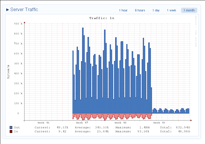 Since 0.99.30 something changed on how statistics are calculated. The screenshot in http://sandino.araico.net/screenshot-2009-12-09-cherokee.png shows the server traffic graph with ~90% decrease in outbound traffic and no more inbound traffic while real traffic on the server has remained the same.