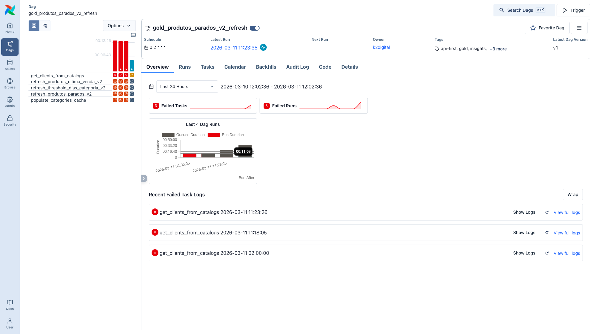 ## Before / After Screenshots Tested on a real Airflow 3.1.7 instance with production DAGs running. ### Duration Chart — Zoomed View | Before | After | |--------|-------| |  |  | **Key improvement**: When all runs are within the same day, the x-axis labels use `HH:mm:ss` format instead of the full `YYYY-MM-DD HH:mm:ss`, avoiding redundant date prefixes and label overlapping. ### Full Page View <details> <summary>Click to expand full page screenshots</summary> **Before:**  **After:**  </details> ### Test Environment - Airflow 3.1.7 (`apache/airflow:3.1.7-python3.11`) - 37 production DAGs, 4 completed DAG runs - Screenshots captured via Playwright headless browser -- This is an automated message from the Apache Git Service. To respond to the message, please log on to GitHub and use the URL above to go to the specific comment. To unsubscribe, e-mail: [email protected] For queries about this service, please contact Infrastructure at: [email protected]