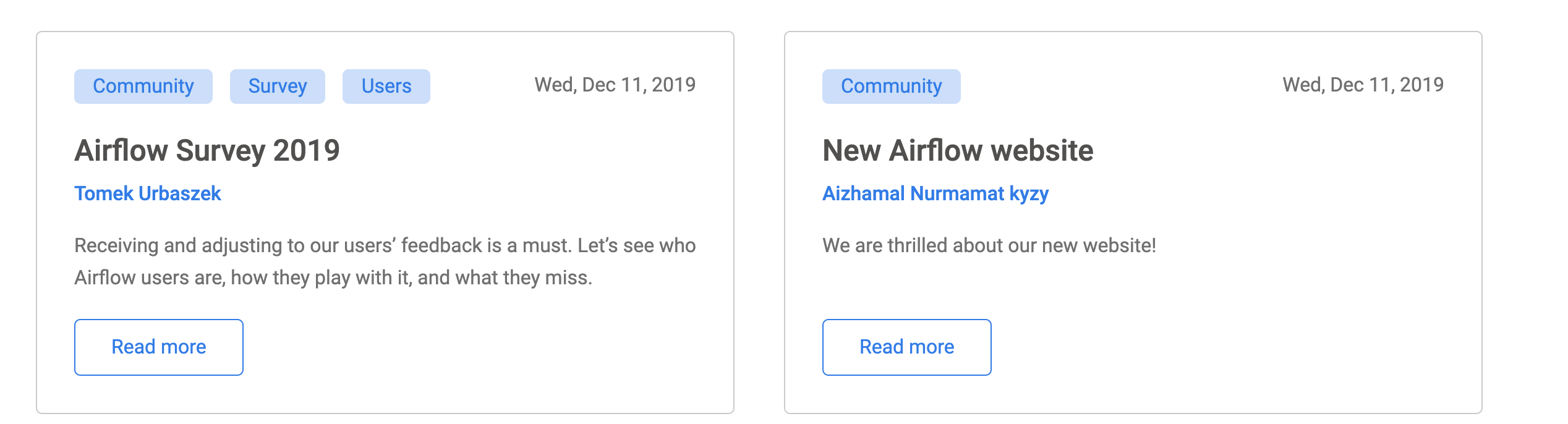 kaxil opened a new issue #221: Add Blog post links to its title URL: https://github.com/apache/airflow-site/issues/221 I think we should add the link of the blog post to its title too. Currently one has to click on **Read more** but it would be ideal if we have it the link on the blog post title too