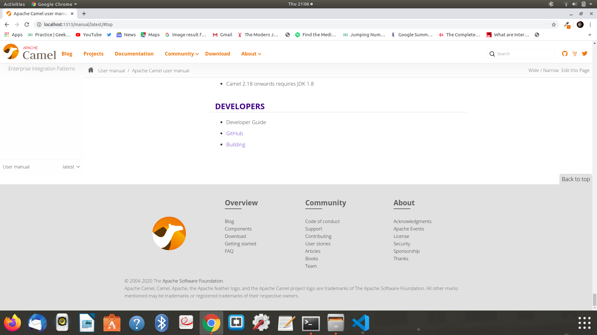 psingh587 edited a comment on issue #307: chore: add back to top link URL: https://github.com/apache/camel-website/pull/307#issuecomment-607924433  **@zregvart Actually this happens here. The nav-container box gets lifted up here. The same thing occurred with me when I tried to put the anchor at the bottom. Nevertheless, if this is the design we should go with, then I will close my PR #301**