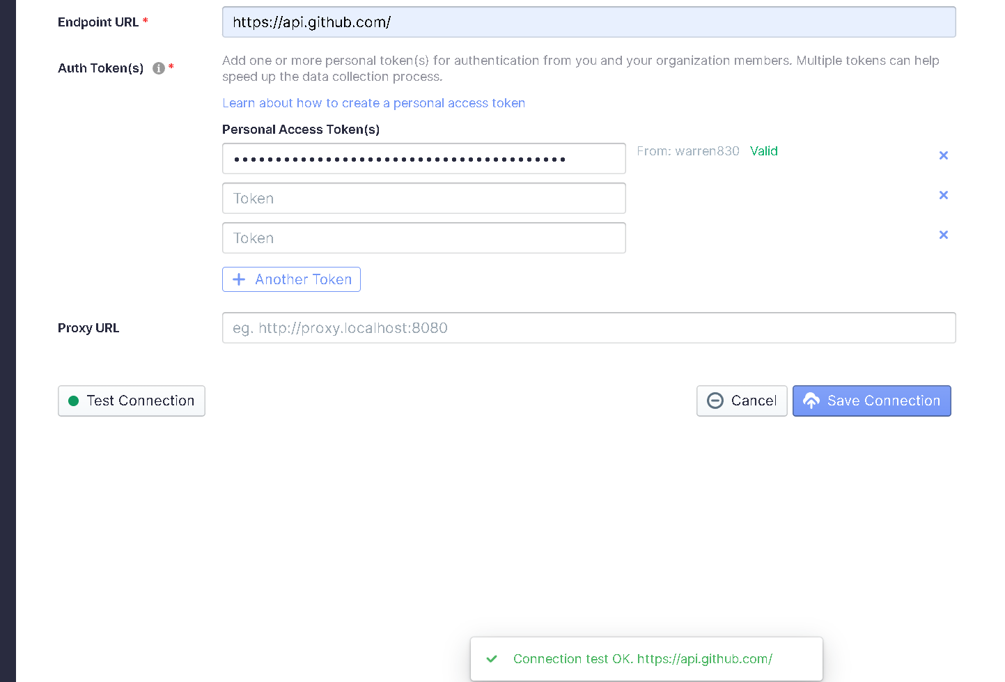 ### Search before asking - [X] I had searched in the [issues](https://github.com/apache/incubator-devlake/issues?q=is%3Aissue) and found no similar issues. ### What happened When tokens are used separately,the config-ui test connection show success. When using multiple tokens at the same time, the test connection show error.    ### What you expected to happen get success if each token is all right. ### How to reproduce Add two token when creating github connction, and use TestConnction. ### Anything else _No response_ ### Version main ### Are you willing to submit PR? - [X] Yes I am willing to submit a PR! ### Code of Conduct - [X] I agree to follow this project's [Code of Conduct](https://www.apache.org/foundation/policies/conduct) -- This is an automated message from the Apache Git Service. To respond to the message, please log on to GitHub and use the URL above to go to the specific comment. To unsubscribe, e-mail: [email protected] For queries about this service, please contact Infrastructure at: [email protected]