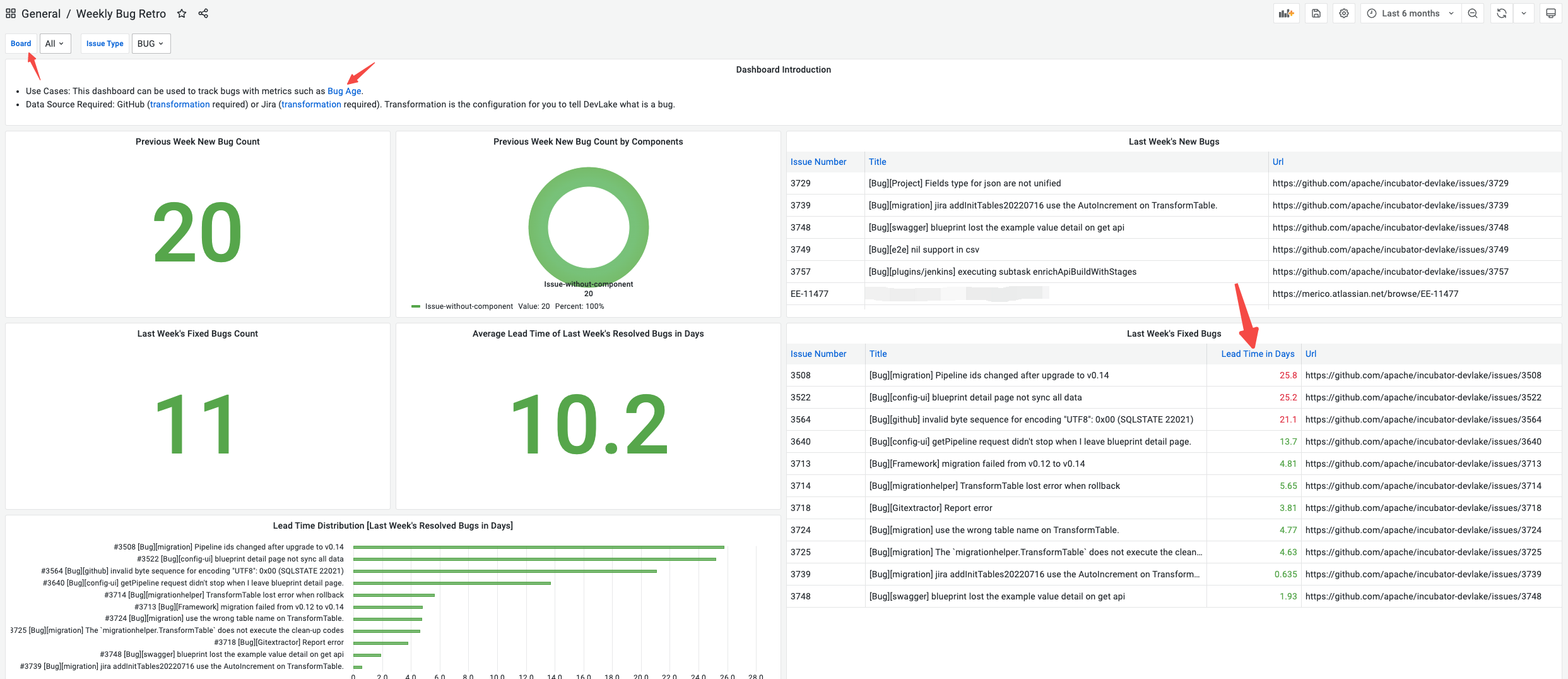 ### ⚠️ Pre Checklist > Please complete _ALL_ items in this checklist, and remove before submitting - [ ] I have read through the [Contributing Documentation](https://devlake.apache.org/community/). - [ ] I have added relevant tests. - [ ] I have added relevant documentation. - [ ] I will add labels to the PR, such as `pr-type/bug-fix`, `pr-type/feature-development`, etc. <!-- Thanks for submitting a pull request! We appreciate you spending the time to work on these changes. Please fill out as many sections below as possible. --> ### What does this PR do? fix: update Jenkins and weekly bug retro dashboards ### Does this close any open issues? Closes https://github.com/apache/incubator-devlake/issues/3808 Closes https://github.com/apache/incubator-devlake/issues/3809 ### Screenshots    -- This is an automated message from the Apache Git Service. To respond to the message, please log on to GitHub and use the URL above to go to the specific comment. To unsubscribe, e-mail: [email protected] For queries about this service, please contact Infrastructure at: [email protected]