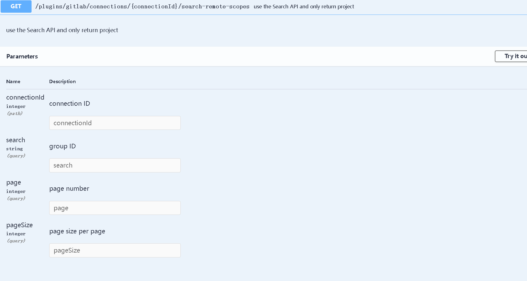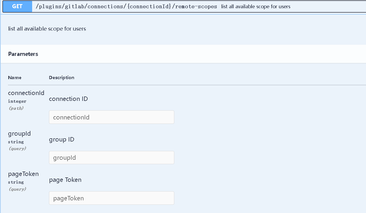 ### Summary change swagger param body to query for gitlab remote api ### Screenshots   -- This is an automated message from the Apache Git Service. To respond to the message, please log on to GitHub and use the URL above to go to the specific comment. To unsubscribe, e-mail: [email protected] For queries about this service, please contact Infrastructure at: [email protected]