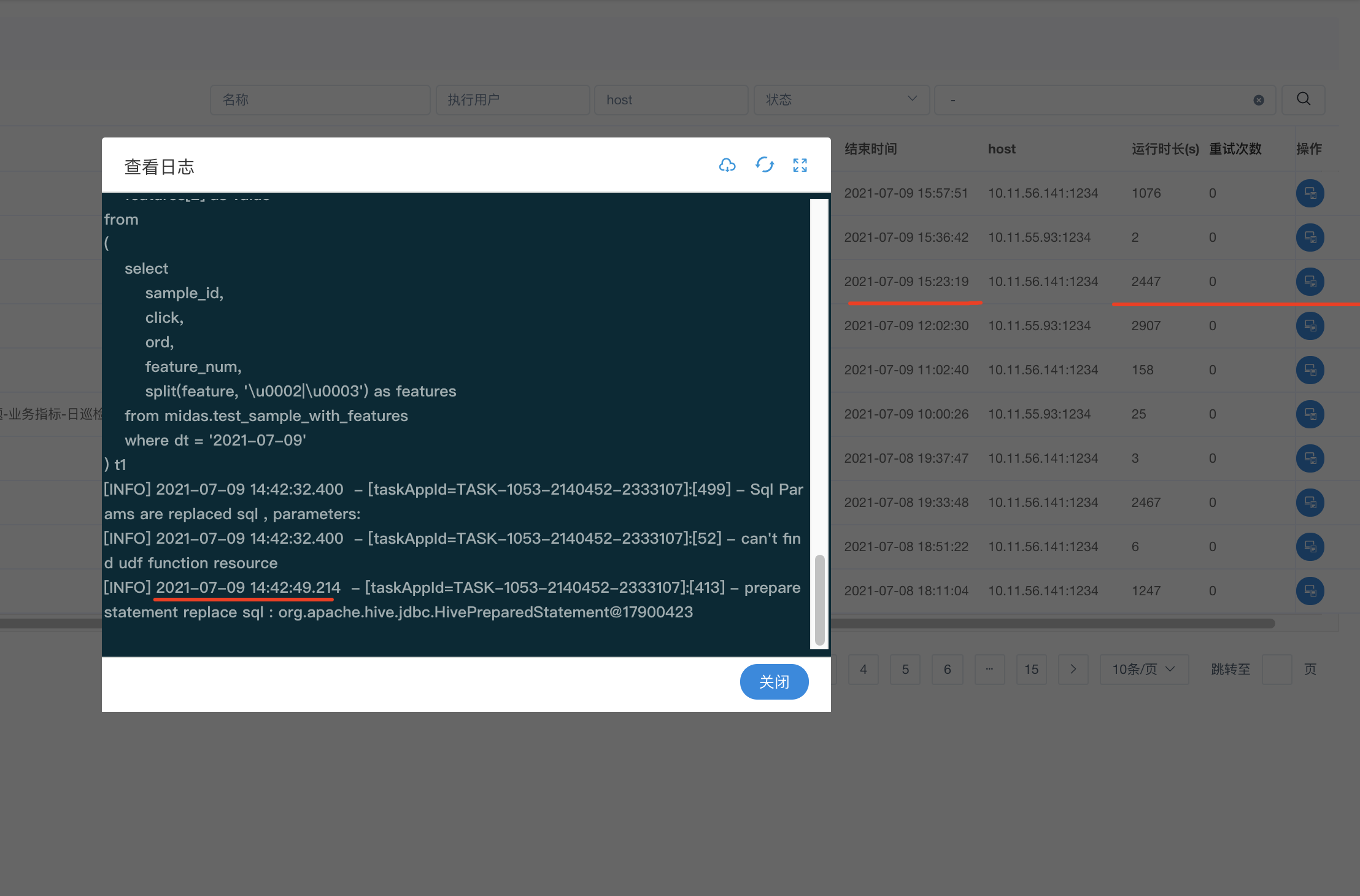 ds 1.3.4 version, sql node, operation hive data source, statement: insert overwrite table xxx partition(dt='2021-07-08') select ... Check the task log, the log is missing, only the start log, no end log, and the applicationid cannot be seen in the log, and it cannot be viewed in the yarn web ui.  -- This is an automated message from the Apache Git Service. To respond to the message, please log on to GitHub and use the URL above to go to the specific comment. To unsubscribe, e-mail: [email protected] For queries about this service, please contact Infrastructure at: [email protected]