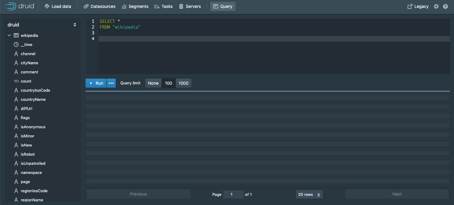 vogievetsky opened a new pull request #8378: Web console: more explicit limit on run button URL: https://github.com/apache/incubator-druid/pull/8378  - Make the limit wrapped around the SQL query more obvious. - Make the run button primary - Correctly highlight all the SQL constants