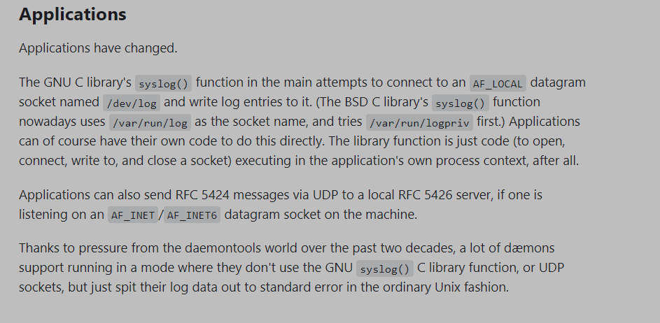 ## Summary i think use /dev/log & /dev/kmsg is better than /dev/syslog & /dev/ramlog. https://unix.stackexchange.com/questions/205883/understand-logging-in-linux/294206#294206   ## Impact all applications use "/dev/syslog" & "/dev/ramlog“ as an absolute path ## Testing daliy -- This is an automated message from the Apache Git Service. To respond to the message, please log on to GitHub and use the URL above to go to the specific comment. To unsubscribe, e-mail: [email protected] For queries about this service, please contact Infrastructure at: [email protected]