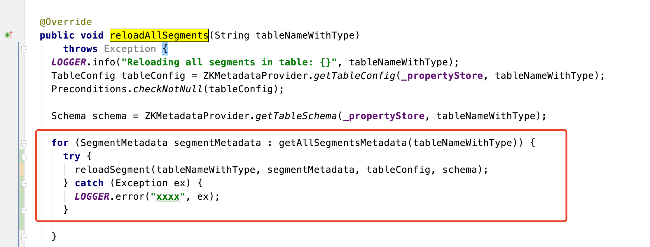 Suggest change:  Failed log: ``` 2021-10-22 04:04:34.307 ERROR [HelixTask] [HelixTaskExecutor-message_handle_thread] Exception while executing a message. java.lang.RuntimeException: Caught exception while reloading segment: in table: wme_metrics_customer_report_REALTIME msgId: e881ac8e-f1e3-4533-85c5-4cd60565cc16 type: USER_DEFINE_MSG java.lang.RuntimeException: Caught exception while reloading segment: in table: wme_metrics_customer_report_REALTIME at org.apache.pinot.server.starter.helix.SegmentMessageHandlerFactory$SegmentReloadMessageHandler.handleMessage(SegmentMessageHandlerFactory.java:161) ~[pinot-all-0.8.0-jar-with-dependencies.jar:0.8.0-031903bac9a6b6fa3b906d6093925d5fdc2e5502] at org.apache.helix.messaging.handling.HelixTask.call(HelixTask.java:97) [pinot-all-0.8.0-jar-with-dependencies.jar:0.8.0-031903bac9a6b6fa3b906d6093925d5fdc2e5502] at org.apache.helix.messaging.handling.HelixTask.call(HelixTask.java:49) [pinot-all-0.8.0-jar-with-dependencies.jar:0.8.0-031903bac9a6b6fa3b906d6093925d5fdc2e5502] at java.util.concurrent.FutureTask.run(FutureTask.java:266) [?:1.8.0_272] at java.util.concurrent.ThreadPoolExecutor.runWorker(ThreadPoolExecutor.java:1149) [?:1.8.0_272] at java.util.concurrent.ThreadPoolExecutor$Worker.run(ThreadPoolExecutor.java:624) [?:1.8.0_272] at java.lang.Thread.run(Thread.java:748) [?:1.8.0_272] Caused by: java.lang.IllegalStateException: Index directory: /vdb/pinot/data/wme_metrics_customer_report_REALTIME/wme_metrics_customer_report__24__333__20211001T0003Z is not a directory at shaded.com.google.common.base.Preconditions.checkState(Preconditions.java:518) ~[pinot-all-0.8.0-jar-with-dependencies.jar:0.8.0-031903bac9a6b6fa3b906d6093925d5fdc2e5502] at org.apache.pinot.server.starter.helix.HelixInstanceDataManager.reloadSegment(HelixInstanceDataManager.java:262) ~[pinot-all-0.8.0-jar-with-dependencies.jar:0.8.0-031903bac9a6b6fa3b906d6093925d5fdc2e5502] at org.apache.pinot.server.starter.helix.HelixInstanceDataManager.reloadAllSegments(HelixInstanceDataManager.java:224) ~[pinot-all-0.8.0-jar-with-dependencies.jar:0.8.0-031903bac9a6b6fa3b906d6093925d5fdc2e5502] at org.apache.pinot.server.starter.helix.SegmentMessageHandlerFactory$SegmentReloadMessageHandler.handleMessage(SegmentMessageHandlerFactory.java:150) ~[pinot-all-0.8.0-jar-with-dependencies.jar:0.8.0-031903bac9a6b6fa3b906d6093925d5fdc2e5502] ... 6 more 2021-10-22 04:04:34.366 ERROR [HelixTask] [HelixTaskExecutor-message_handle_thread] Message execution failed. msgId: e881ac8e-f1e3-4533-85c5-4cd60565cc16, errorMsg: Caught exception while reloading segment: in table: wme_metrics_customer_report_REALTIME 2021-10-22 04:04:34.375 ERROR [wme_metrics_customer_report_REALTIME-SegmentReloadMessageHandler] [HelixTaskExecutor-message_handle_thread] onError: INTERNAL, ERROR java.lang.RuntimeException: Caught exception while reloading segment: in table: wme_metrics_customer_report_REALTIME at org.apache.pinot.server.starter.helix.SegmentMessageHandlerFactory$SegmentReloadMessageHandler.handleMessage(SegmentMessageHandlerFactory.java:161) ~[pinot-all-0.8.0-jar-with-dependencies.jar:0.8.0-031903bac9a6b6fa3b906d6093925d5fdc2e5502] at org.apache.helix.messaging.handling.HelixTask.call(HelixTask.java:97) [pinot-all-0.8.0-jar-with-dependencies.jar:0.8.0-031903bac9a6b6fa3b906d6093925d5fdc2e5502] at org.apache.helix.messaging.handling.HelixTask.call(HelixTask.java:49) [pinot-all-0.8.0-jar-with-dependencies.jar:0.8.0-031903bac9a6b6fa3b906d6093925d5fdc2e5502] at java.util.concurrent.FutureTask.run(FutureTask.java:266) [?:1.8.0_272] at java.util.concurrent.ThreadPoolExecutor.runWorker(ThreadPoolExecutor.java:1149) [?:1.8.0_272] at java.util.concurrent.ThreadPoolExecutor$Worker.run(ThreadPoolExecutor.java:624) [?:1.8.0_272] at java.lang.Thread.run(Thread.java:748) [?:1.8.0_272] Caused by: java.lang.IllegalStateException: Index directory: /vdb/pinot/data/wme_metrics_customer_report_REALTIME/wme_metrics_customer_report__24__333__20211001T0003Z is not a directory at shaded.com.google.common.base.Preconditions.checkState(Preconditions.java:518) ~[pinot-all-0.8.0-jar-with-dependencies.jar:0.8.0-031903bac9a6b6fa3b906d6093925d5fdc2e5502] at org.apache.pinot.server.starter.helix.HelixInstanceDataManager.reloadSegment(HelixInstanceDataManager.java:262) ~[pinot-all-0.8.0-jar-with-dependencies.jar:0.8.0-031903bac9a6b6fa3b906d6093925d5fdc2e5502] at org.apache.pinot.server.starter.helix.HelixInstanceDataManager.reloadAllSegments(HelixInstanceDataManager.java:224) ~[pinot-all-0.8.0-jar-with-dependencies.jar:0.8.0-031903bac9a6b6fa3b906d6093925d5fdc2e5502] at org.apache.pinot.server.starter.helix.SegmentMessageHandlerFactory$SegmentReloadMessageHandler.handleMessage(SegmentMessageHandlerFactory.java:150) ~[pinot-all-0.8.0-jar-with-dependencies.jar:0.8.0-031903bac9a6b6fa3b906d6093925d5fdc2e5502] ... 6 more ``` -- This is an automated message from the Apache Git Service. To respond to the message, please log on to GitHub and use the URL above to go to the specific comment. To unsubscribe, e-mail: [email protected] For queries about this service, please contact Infrastructure at: [email protected] --------------------------------------------------------------------- To unsubscribe, e-mail: [email protected] For additional commands, e-mail: [email protected]