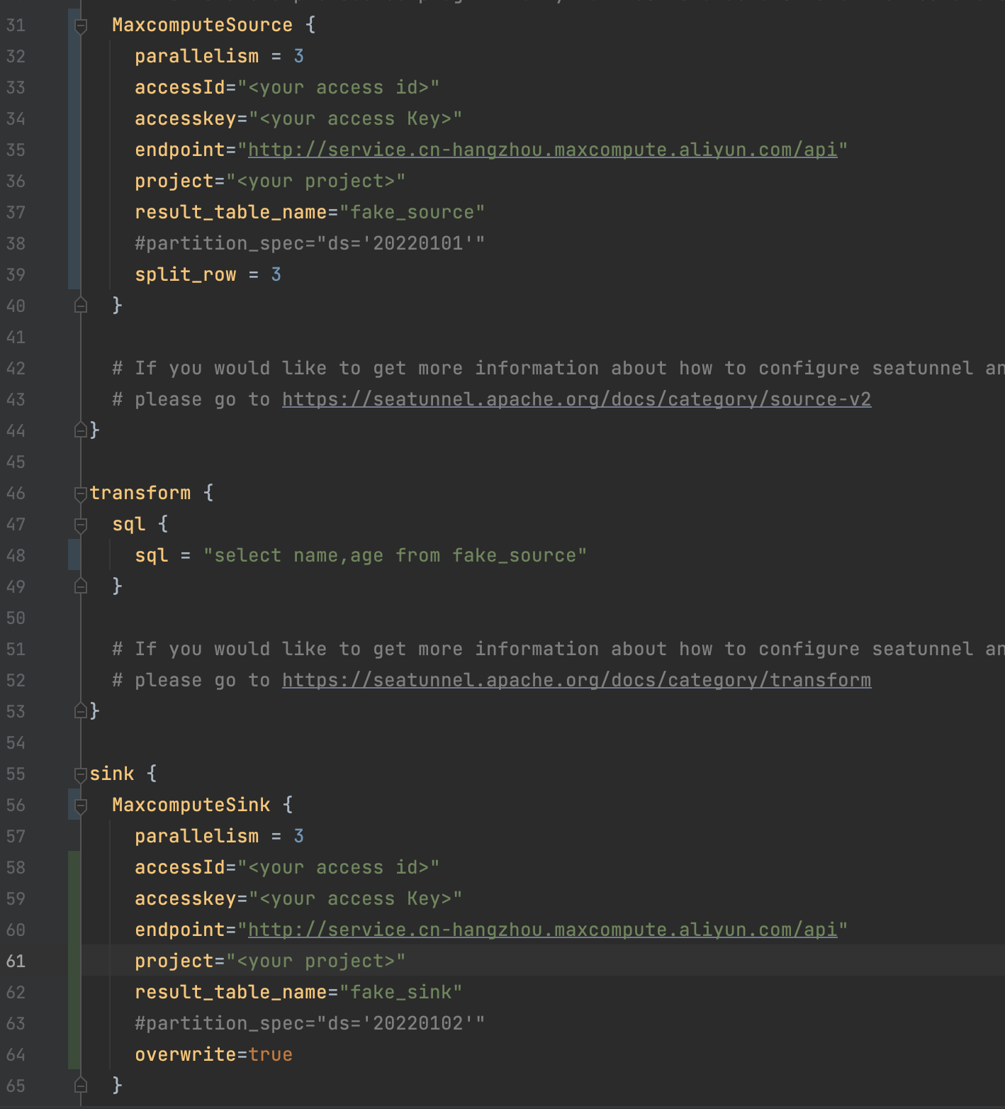########## seatunnel-connectors-v2/connector-maxcompute/src/main/java/org/apache/seatunnel/connectors/seatunnel/maxcompute/sink/MaxcomputeSinkFactory.java: ########## @@ -0,0 +1,43 @@ +/* + * Licensed to the Apache Software Foundation (ASF) under one or more + * contributor license agreements. See the NOTICE file distributed with + * this work for additional information regarding copyright ownership. + * The ASF licenses this file to You under the Apache License, Version 2.0 + * (the "License"); you may not use this file except in compliance with + * the License. You may obtain a copy of the License at + * + * http://www.apache.org/licenses/LICENSE-2.0 + * + * Unless required by applicable law or agreed to in writing, software + * distributed under the License is distributed on an "AS IS" BASIS, + * WITHOUT WARRANTIES OR CONDITIONS OF ANY KIND, either express or implied. + * See the License for the specific language governing permissions and + * limitations under the License. + */ + +package org.apache.seatunnel.connectors.seatunnel.maxcompute.sink; + +import static org.apache.seatunnel.connectors.seatunnel.maxcompute.config.MaxcomputeConfig.ACCESS_ID; +import static org.apache.seatunnel.connectors.seatunnel.maxcompute.config.MaxcomputeConfig.ACCESS_KEY; +import static org.apache.seatunnel.connectors.seatunnel.maxcompute.config.MaxcomputeConfig.ENDPOINT; +import static org.apache.seatunnel.connectors.seatunnel.maxcompute.config.MaxcomputeConfig.PROJECT; +import static org.apache.seatunnel.connectors.seatunnel.maxcompute.config.MaxcomputeConfig.RESULT_TABLE_NAME; + +import org.apache.seatunnel.api.configuration.util.OptionRule; +import org.apache.seatunnel.api.table.factory.Factory; +import org.apache.seatunnel.api.table.factory.TableSinkFactory; + +import com.google.auto.service.AutoService; + +@AutoService(Factory.class) +public class MaxcomputeSinkFactory implements TableSinkFactory { + @Override + public String factoryIdentifier() { + return "Maxcompute"; + } + + @Override + public OptionRule optionRule() { Review Comment: > Please add e2e tests or picture proof that this connector feature is available.   -- This is an automated message from the Apache Git Service. To respond to the message, please log on to GitHub and use the URL above to go to the specific comment. To unsubscribe, e-mail: [email protected] For queries about this service, please contact Infrastructure at: [email protected]
