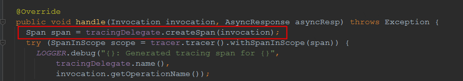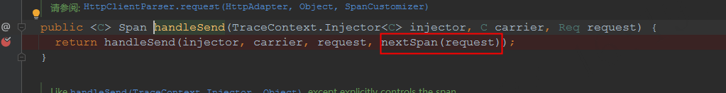 > ``` > 我看唯一框架有修改traceId的地方就是这里 你断点点在这里看看这里是啥时候被走的吧 https://github.com/apache/servicecomb-java-chassis/blob/1.0.0-m1/common/common-rest/src/main/java/org/apache/servicecomb/common/rest/filter/tracing/TracingFilter.java > ``` 这个过滤器存在于common-rest的包里,在目前使用的CSE商业版中已经找不到了。 在开始RPC调用时,会经过ZipkinTracingHandler,ZipkinTracingHandler里的handler方法调用ZipkinTracingDelegate的createSpan(invocation)方法,这个方法的实现是ZipkinConsumerDelegate的createSapn(); 下图是调用的链路:  在这里调用了brave包中的HttpClientHandler的方法,一下三张图是方法调用路径    第三张图中的方法的nextSpan生成了Span对象,以下2张图是进入方法内部的逻辑   生成Span以后,回到HttpClientHandler的handlerSend方法,   在B3Propagation的inject方法中将X-B3-SpanId存入invocation -- This is an automated message from the Apache Git Service. To respond to the message, please log on to GitHub and use the URL above to go to the specific comment. To unsubscribe, e-mail: [email protected] For queries about this service, please contact Infrastructure at: [email protected]