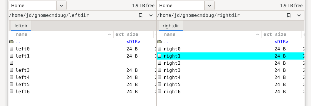 On Monday 02 February 2026 11:39:10 am Jesper Dybdal wrote: > I've always liked the Norton Commander style of a 2-pane file > manager, and I'm currently trying Gnome Commander under Trixie with > xfce. But I have two problems with it - either bugs, or possibly > something I've done wrong installing it. > > Are the following known bugs? I haven't found any mention of them by > googling. > > **********' Problem (a): > > When trying to enter a directory in which it does not > have read permission, it immediately crashes. Example: create a > directory with mode 111, and try to enter it with Gnome Commander. > > When it crashes, it leaves something like this in syslog: > 026-02-02T15:32:07.919765+01:00 andy kernel: gnome-commander[297175]: > segfault at 942296e8 ip 000055997ac78517 sp 00007ffcb15404b0 error 4 in > gnome-commander[81517,55997ac36000+a7000] likely on CPU 15 (core 35, > socket 0) > 2026-02-02T15:32:07.919774+01:00 andy kernel: Code: d3 48 83 ec 30 64 48 > 8b 04 25 28 00 00 00 48 89 44 24 28 31 c0 e8 a9 26 02 00 48 85 ed 0f 84 > bf 00 00 00 48 8d 3d c9 77 06 00 <4c> 8b 6d 08 4c 8d 74 24 10 e8 5b eb > fb ff 4c 89 34 24 49 89 c4 48 > > **********' Problem (b): > > It shows the selected file in the not-selected pane as blank. > > I have an example in the form of 3 screen shots: > > https://www.dybdal.dk/gnomecmdbug/Screenshot1.png : > In Screenshot1.png, the file left2 in the left pane is selected. But > notice that the place where right4 could be expected in the right > pane, there is a blank line. > > https://www.dybdal.dk/gnomecmdbug/Screenshot2.png : > I then clicked on the right1 file (right pane), and now left2 (the > formerly selected file) became blank. > > https://www.dybdal.dk/gnomecmdbug/Screenshot3.png : > I then clicked on left5, and right1 became blank.