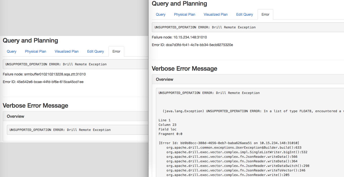 lushuifeng commented on issue #1519: DRILL-6760: Retain original exception in Verbose Error Message URL: https://github.com/apache/drill/pull/1519#issuecomment-436864699 @arina-ielchiieva Changes are made according to your suggestions, could you please take another look? (Building job timeouts) Here is the comparison of before and after the change with the same query.