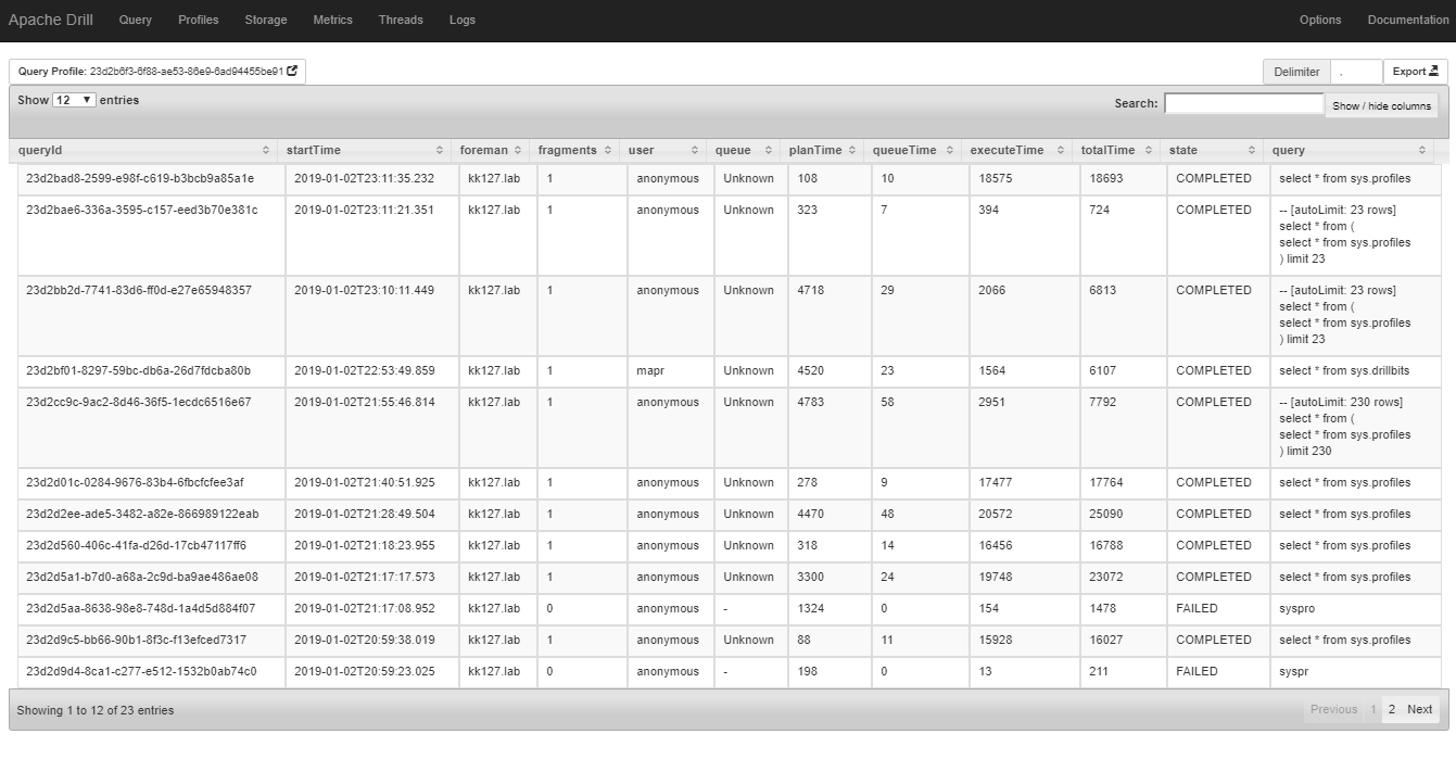 kkhatua opened a new pull request #1593: DRILL-6050: Provide a limit to number of rows fetched for a query in UI URL: https://github.com/apache/drill/pull/1593 Currently, the WebServer side needs to process the entire set of results and stream it back to the WebClient, which puts immense pressure on the WebServer when rendering the resultset. Since the WebUI does paginate results, we can load a larger set for pagination on the browser client and relieve pressure off the WebServer to host all the data (most of which will never be streamed to the browser). e.g. Fetching all rows from a 1Billion records table is impractical and can be capped at (say) 1K. Currently, the user has to explicitly specify LIMIT in the submitted query. An option is provided in the field to allow for this entry, and can be set to selected by default for the Web UI. The submitted query indicates that an auto-limiting wrapper was applied. In addition, the resultset is now configurable to allow for the default number or rows displayed per page to be changed from 10 to anything that the user might want. Configuration additions in `drill-module.conf` (changes should be made in `drill-override.conf` ): ``` drill.exec.http: { web.client.resultset: { autolimit { enable: true, rows: 1000 }, defaultRowsPerPage: 10 } } ``` Screenshot with default (unselected) set to limit of 23:  Screenshot with default rows per page changed to 12.  Screenshot of the profile indicates the auto-limit having been applied: