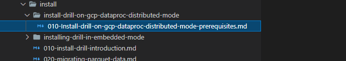Hi @luocooong @paul-rogers I have changed title "install-dril-on..." to "install-drill-on" and its already moved under individual child chapter under (parent chapter is Install Drill), Please let me know if any changes needed I will do it.  -- This is an automated message from the Apache Git Service. To respond to the message, please log on to GitHub and use the URL above to go to the specific comment. To unsubscribe, e-mail: [email protected] For queries about this service, please contact Infrastructure at: [email protected]