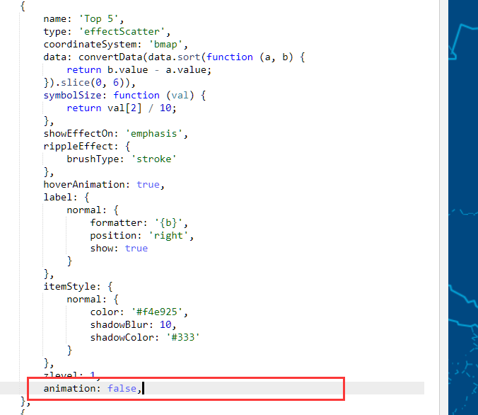 nongzhenli edited a comment on issue #7142: 百度地图+visualMap,拖动controller 手柄时候地图也会跟着一起动 URL: https://github.com/apache/incubator-echarts/issues/7142#issuecomment-499367118 如果是 使用百度地图 + 散点图(或者其他图形,具体我没试)!我通过 animation: false 关闭了动画效果,就解决了 拖动地图 Echart 跟随拖动的问题了! 官方列子中:[https://echarts.baidu.com/examples/editor.html?c=map-polygon](url),加入 `animation: false` ,如下: