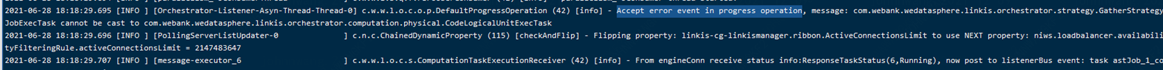 **Describe the bug** ProgressOperation has a class cast exception problem when using TaskTreeUtil, which causes the progress update to fail. The error is as follows:  **To Reproduce** Steps to reproduce the behavior: 1. Run task 2. View progress related logs **Expected behavior** Should be called normally **Additional context** Scala is missing the correct type of generics -- This is an automated message from the Apache Git Service. To respond to the message, please log on to GitHub and use the URL above to go to the specific comment. To unsubscribe, e-mail: [email protected] For queries about this service, please contact Infrastructure at: [email protected] --------------------------------------------------------------------- To unsubscribe, e-mail: [email protected] For additional commands, e-mail: [email protected]