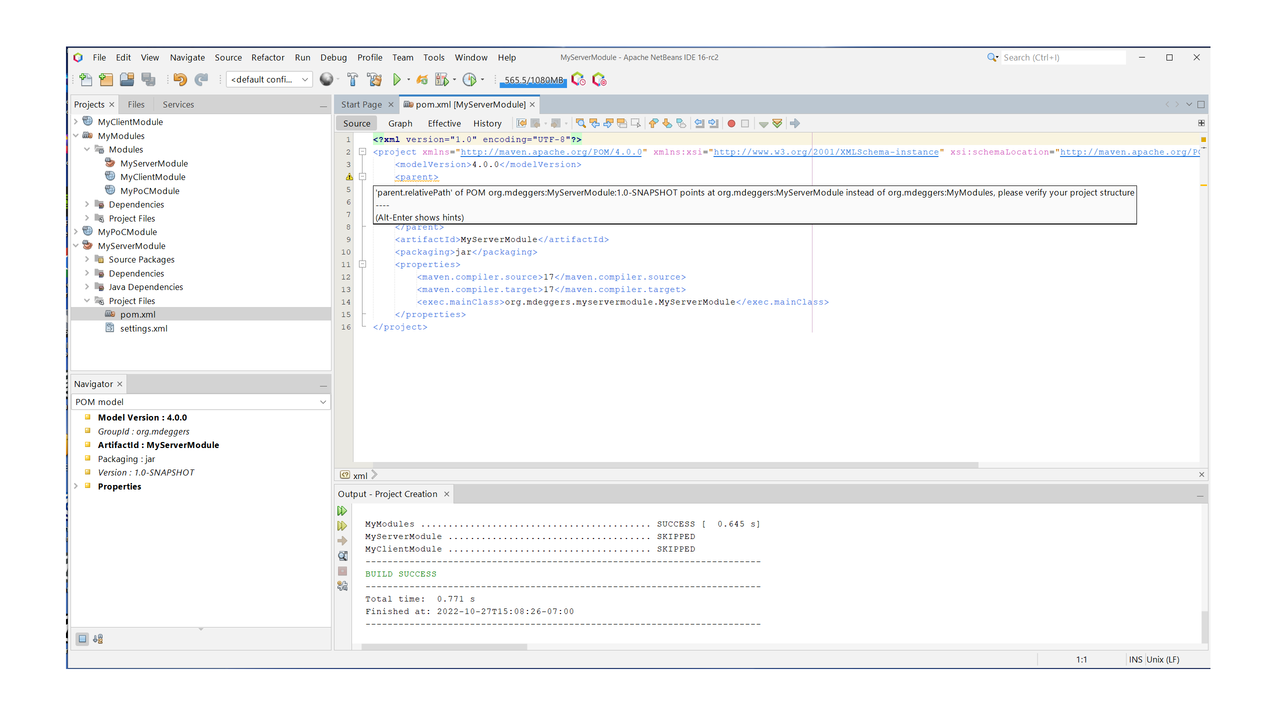 MyServerModule - pom.xml is in Unix (LF) format (Java application)