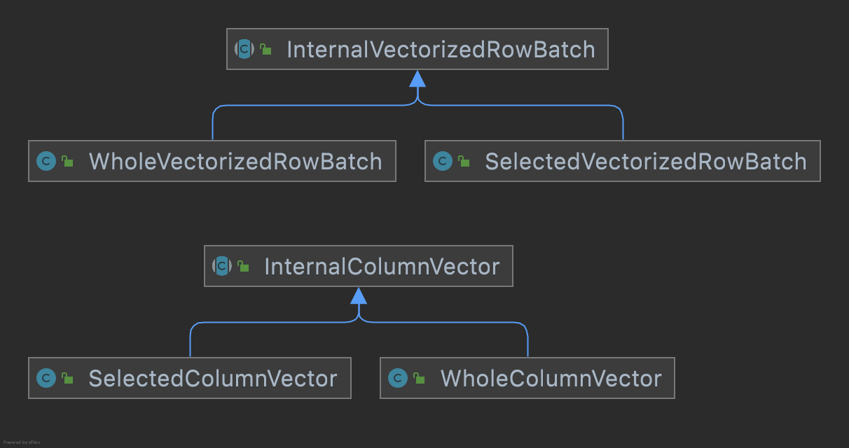 SelectedVectorizedRowBatch/SelectedColumnVector represents a batch/vector