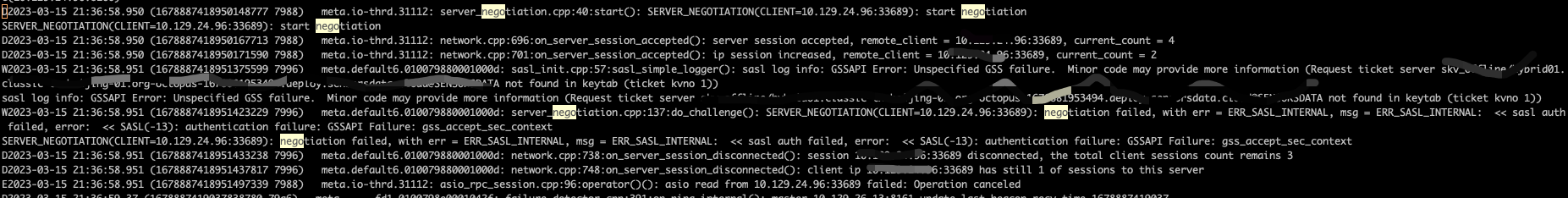 ## Bug Report We use the shell tool `copy_data` to migrate table `table_a` from cluster `clusterA` to table `table_b` of another cluster `clusterB`, as follows ``` >>> use table_a >>> copy_data -c clusterB -a table_a -n -t 20000000 ``` copy_data more usage details: [copy_data](https://pegasus.apache.org/zh/administration/table-migration#copy_data%E8%BF%81%E7%A7%BB) 1. The `principal` of the current c++ client needs to be added to the keytab file used by the target cluster `clusterB`, otherwise the following error will be reported:  2. Because the conf `service_name` and `service_fqdn` of the two clusters are different, and both belong to global variables in the current c++ client process, which makes the client unable to access the two clusters (negotiation will fail too). -- This is an automated message from the Apache Git Service. To respond to the message, please log on to GitHub and use the URL above to go to the specific comment. To unsubscribe, e-mail: [email protected] For queries about this service, please contact Infrastructure at: [email protected] --------------------------------------------------------------------- To unsubscribe, e-mail: [email protected] For additional commands, e-mail: [email protected]