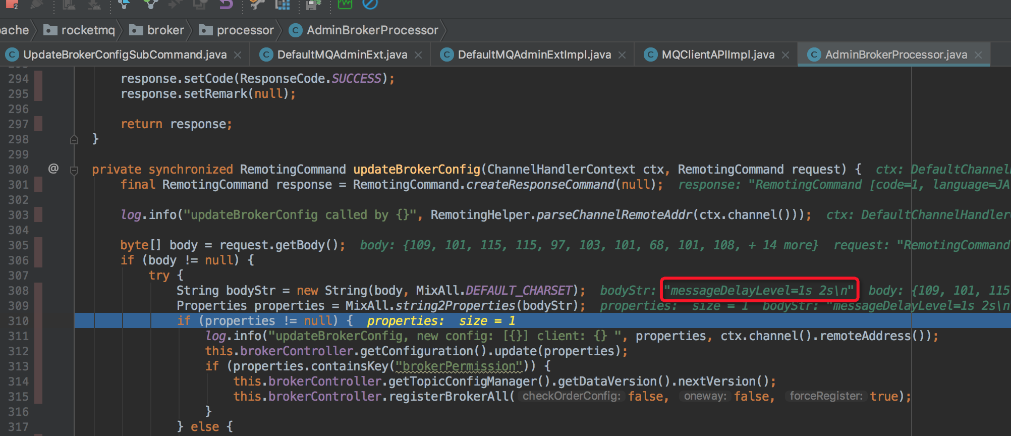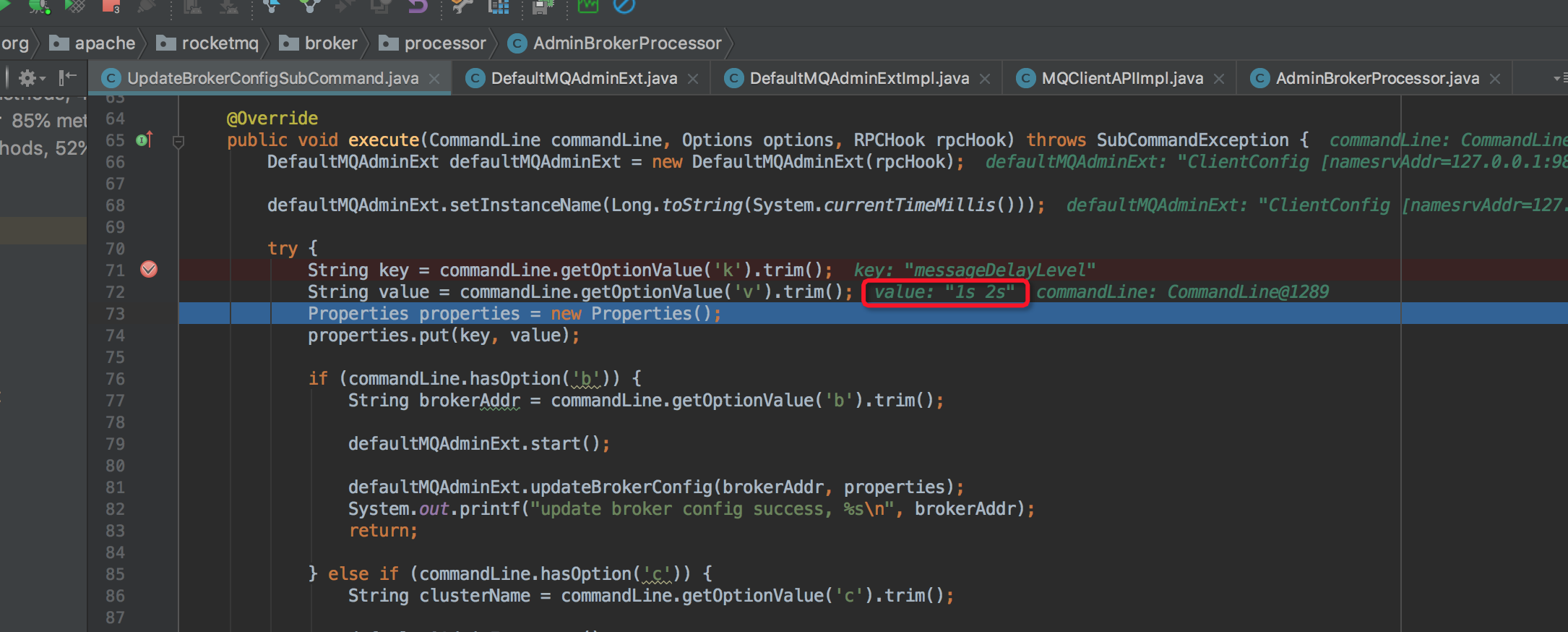 ymwneu commented on issue #530: Admin Command issues URL: https://github.com/apache/rocketmq/issues/530#issuecomment-436514335 I tried command ./mqadmin updateBrokerConfig -k messageDelayLevel -v "1s 2s", found it can work normally.