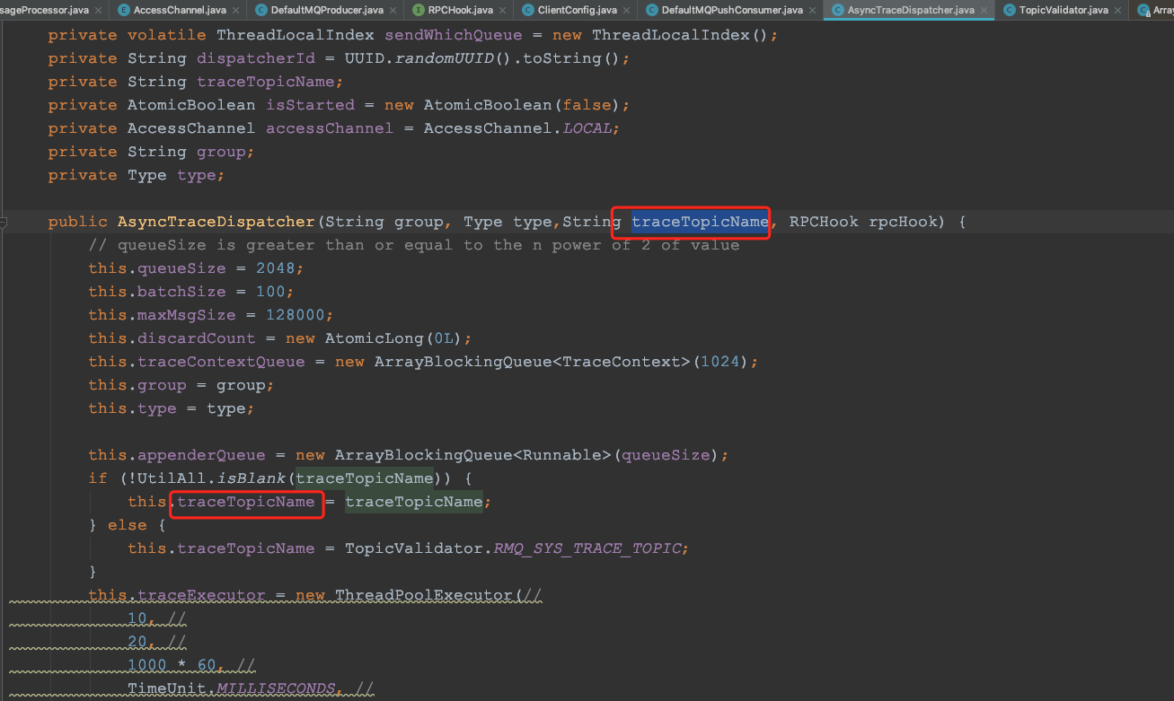 1. we have defined the traceTopicName In the construction method
