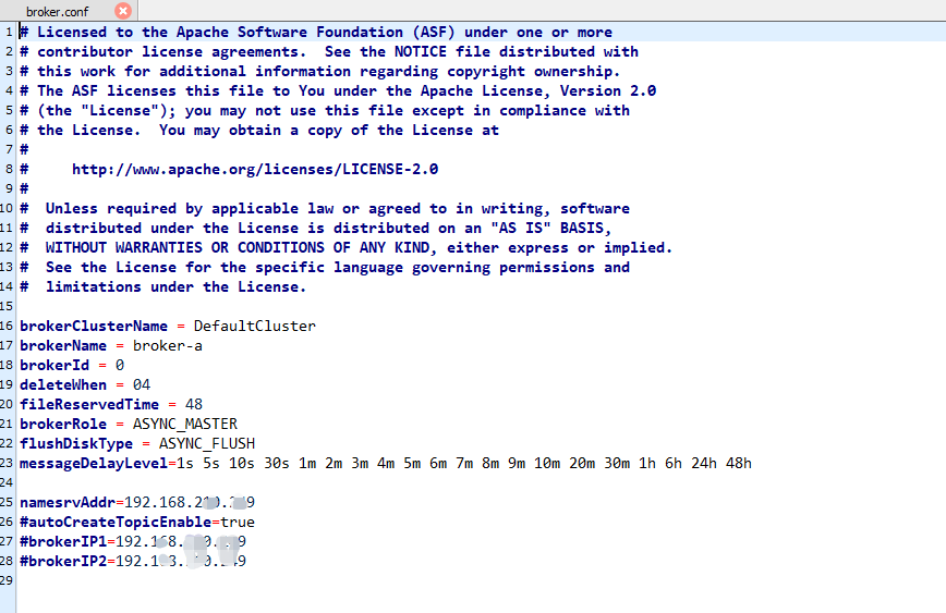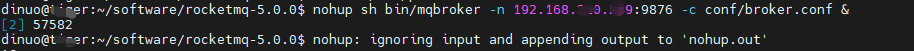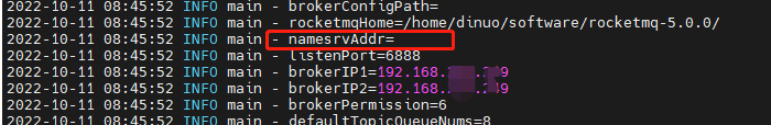 Deployment environment: Ubuntu 20.04.2 LTS (GNU/Linux 5.4.0-125-generic x86_64) deploy rocketmq-5.0.0 Start Broker:  problem: Start Broker failed to load the configuration file broker.conf,View that the output log namesrvAddr value is empty,    -- This is an automated message from the Apache Git Service. To respond to the message, please log on to GitHub and use the URL above to go to the specific comment. To unsubscribe, e-mail: [email protected] For queries about this service, please contact Infrastructure at: [email protected]
