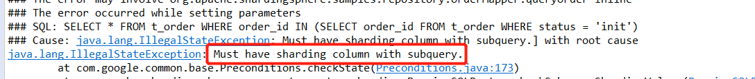 codefairy08 edited a comment on issue #2294: subquery with error URL: https://github.com/apache/incubator-shardingsphere/issues/2294#issuecomment-487487505 @EvanDylan This issue is due to the wrong sharding condition, I will fix it, but the SQ:L contains a subquery, it is executed in all sharding node, so the SQL statement can not be successfully executed.