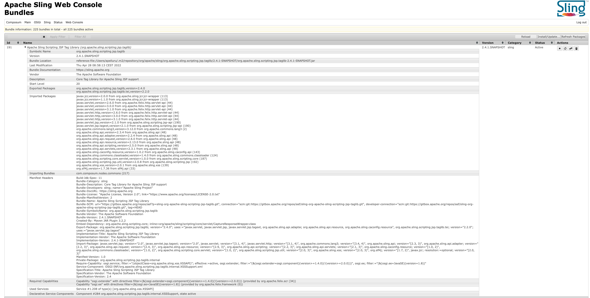 Hi @rombert Thanks for the instructions how to test, more useful information for future testing I have fixed it and verified as per [instructions](https://github.com/apache/sling-org-apache-sling-scripting-jsp-taglib/pull/3#pullrequestreview-953608489) and compared bundle metadata information with old version 2.4.0. I have attached screenshots for reference purposes **With: org.apache.sling:org.apache.sling.scripting.jsp.taglib:2.4.1-SNAPSHOT**  **With: org.apache.sling:org.apache.sling.scripting.jsp.taglib:2.4.0**  -- This is an automated message from the Apache Git Service. To respond to the message, please log on to GitHub and use the URL above to go to the specific comment. To unsubscribe, e-mail: [email protected] For queries about this service, please contact Infrastructure at: [email protected]