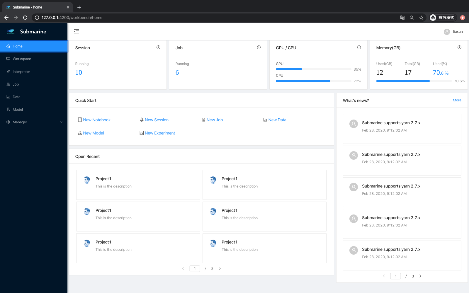 > (1) home page in Vue: https://issues.apache.org/jira/browse/SUBMARINE-102
