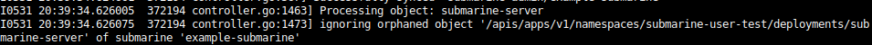4. See the log `Processing object: submarine-server` in the operator log