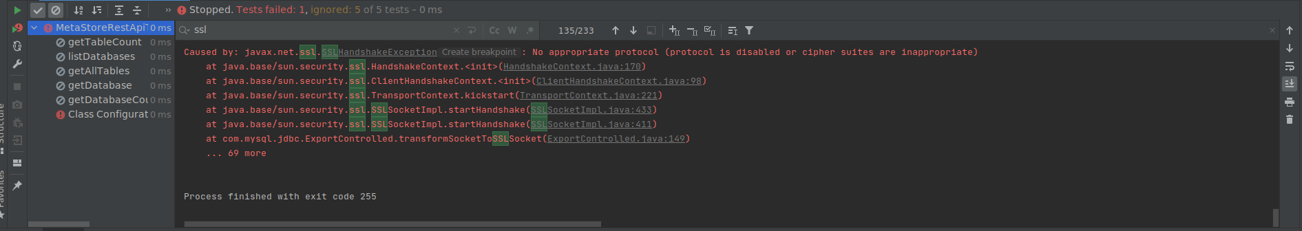 inappropriate)"; however, we have set the useSSL=false. This is the reason that