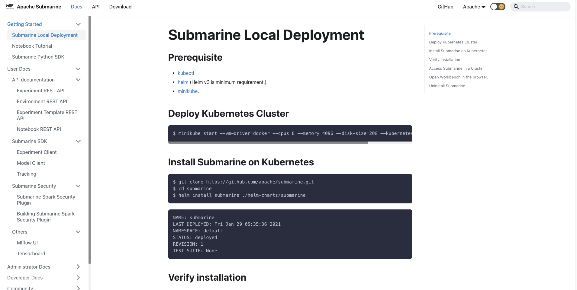 2. Rename "Submarine on Kubernetes" to "API "documentation", categorized