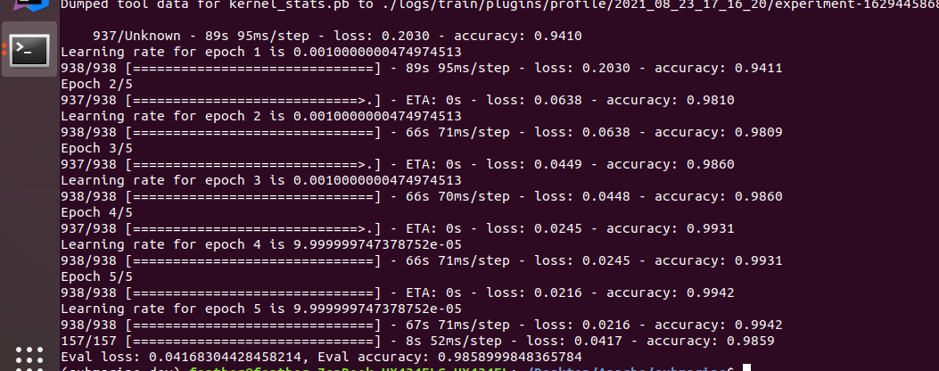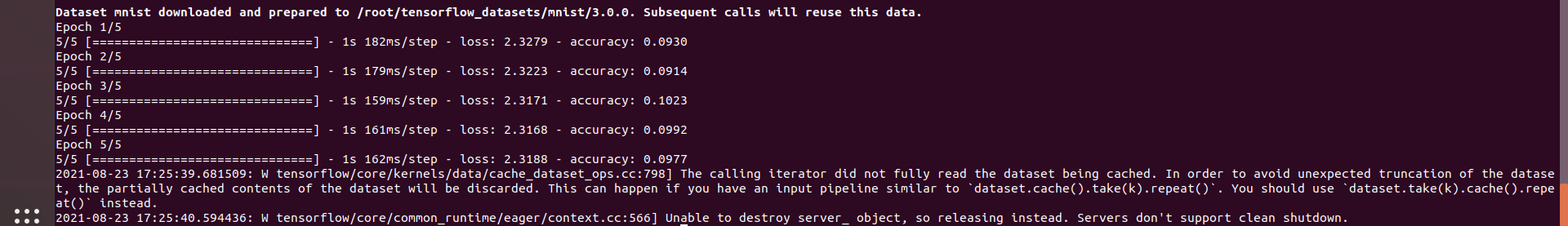 +model.fit(dc, epochs=5, steps_per_epoch=20, callbacks=callbacks)