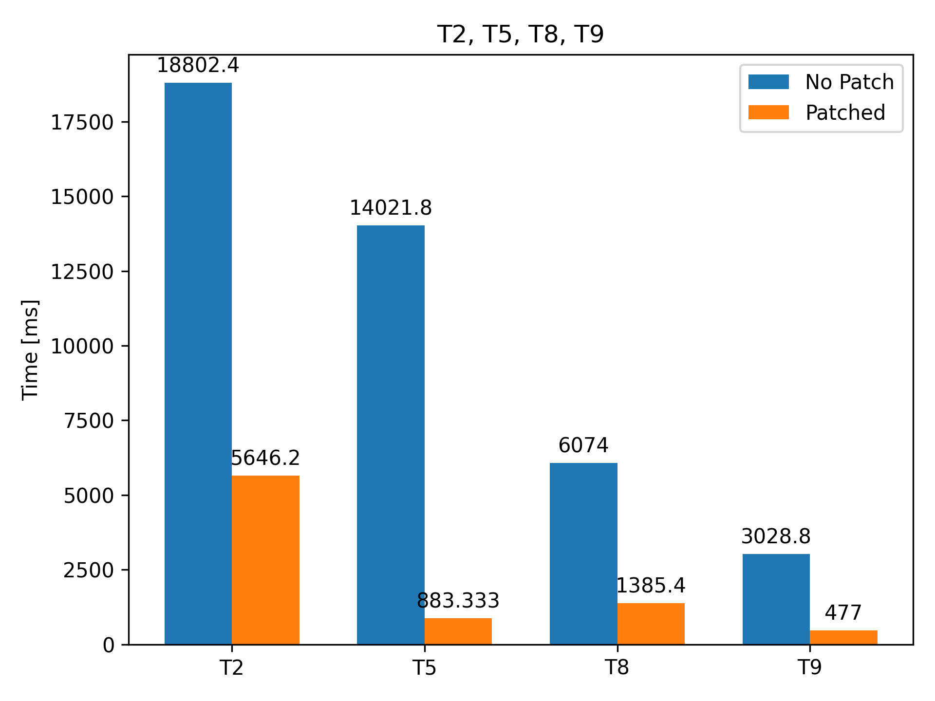 Hi 👋 sorry for taking a bit longer. I've run the T1-T9 benchmarks with 2 worker nodes and our upscaling node as coordinator both with and without the patch applied. Here are some plots of the numbers I got.     -- This is an automated message from the Apache Git Service. To respond to the message, please log on to GitHub and use the URL above to go to the specific comment. To unsubscribe, e-mail: [email protected] For queries about this service, please contact Infrastructure at: [email protected]