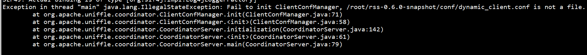 I edit the config file as README.   When I start the start Coordinator I get the error  -- This is an automated message from the Apache Git Service. To respond to the message, please log on to GitHub and use the URL above to go to the specific comment. To unsubscribe, e-mail: [email protected] For queries about this service, please contact Infrastructure at: [email protected]