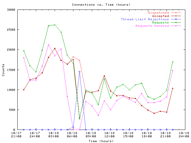 I was about to say the same thing. When I ran uncapped I used to get about 4k - 11k queries per hour. Now that I run capped for 3/4 of the day I average about 500 - 1000 while capped and and climbs to 2k - 5k when I uncap it at night (23:00 - 07:30). You can see a graph of it here: http://danky.com/images/freenet-0.4-stats-hour.png -- In the final reckoning there is only love, only that divinity. That we are capable only of being what we are remains our unforgivable sin. -Gene Wolfe Homepage: http://danky.com Get Freenet: http://groovy.danky.com:8891/a3~IjpgzuGs/ PGP Key: http://danky.com/keys/danello.pgp -------------- next part -------------- A non-text attachment was scrubbed... Name: not available Type: application/pgp-signature Size: 882 bytes Desc: not available URL: <https://emu.freenetproject.org/pipermail/devl/attachments/20030312/5199a107/attachment.pgp>