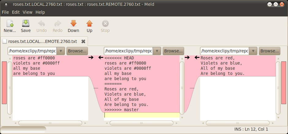yes, that confused me as well I wound up using this scheme: http://blog.wuwon.id.au/2010/09/painless-merge-conflict-resolution-in.html