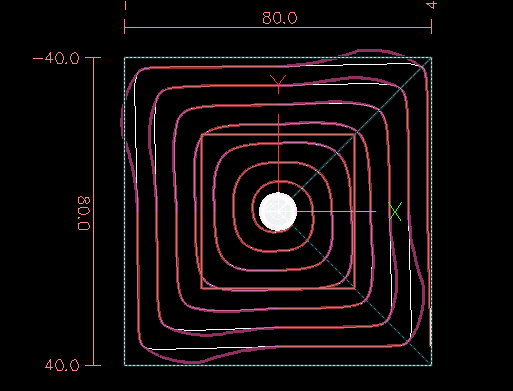 Hello, I wrote a quadrangle pocketing routine in G-Code which uses nurbs (G5.2). The motivation for this is that I dislike the current ngcgui routine (qpocket) for a couple reason. When qpocket cuts from one quad to another, "spiraling out", it actually cuts a scaled quad, then adds one edge where it slowly cuts toward the next scaled quad. That cut is really slow and is superfluous if the cut was really following a quad spiral instead. Second, and most important for me, the cut fully digs in on each corner (depending on the angle of the corner of course, but generally it is pretty big).