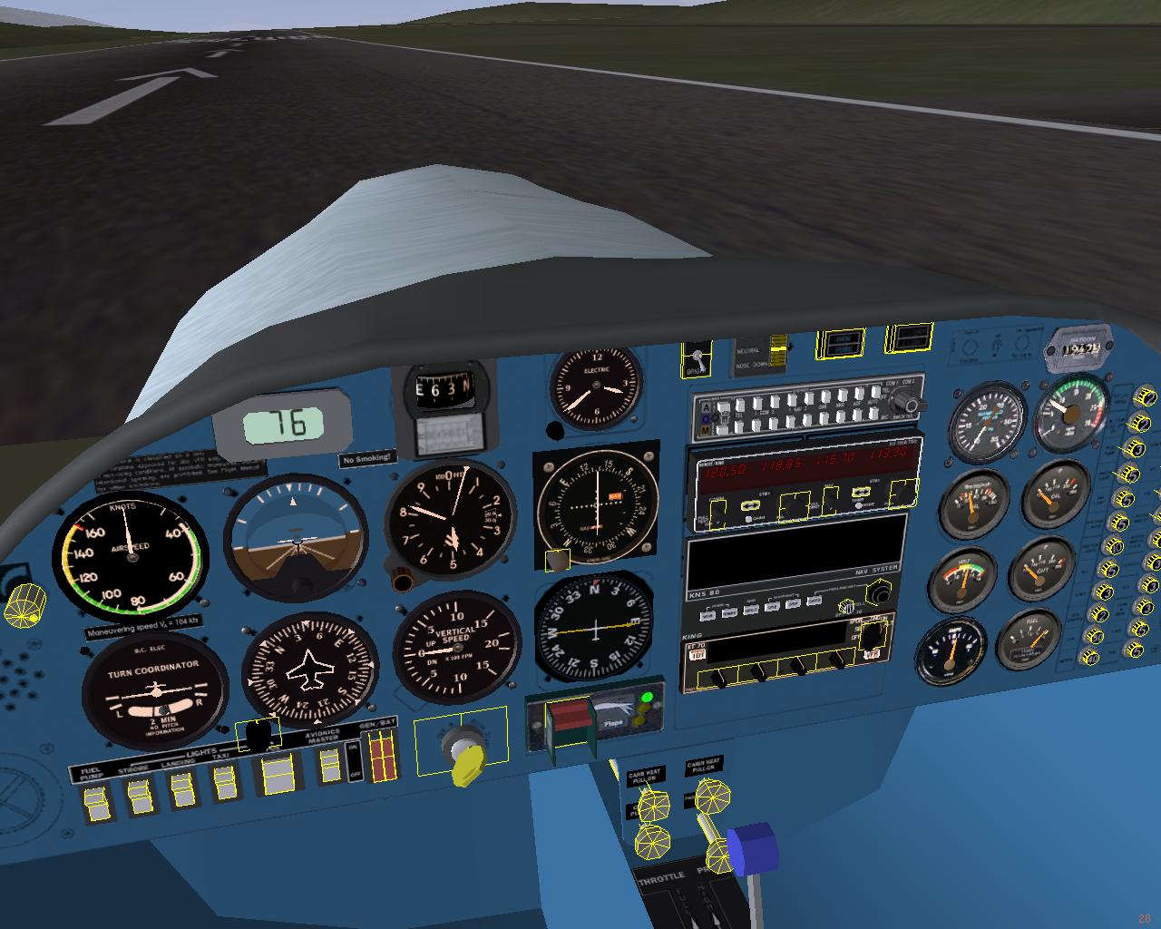 I don't see white highlighting, but I do see the z-buffer issue with old-style panel hotspots. Take a look at converting over from panels to OSG hotspots. Maintenance is easier, clickable instruments are portable, and if you move an instrument or switch, the hotspot automatically moves with it, including moving the switch with an animation. For example, a to move a gear handle you always click the handle, not some vaguely defined rectangle in the general area of the handle. http://www.jentronics.com/fgfs/temp/hotspots.jpg All the hotspots in the DA20 model are OSG, I borrowed some of the instrumentation from elsewhere so there is a mix of styles for turnable knobs. My personal preference here is the mouse wheel, that is how the instrument brightness knob (left side by ASI) works. The OBI and heading indicator use the old style "squares" hotspots. Especially note the carb-heat, cabin-heat, choke and parking brake knobs on the pedestal console. With a plib-style hotspot scheme you almost have to turn on the highlighting to tell where to click. With the OSG style, you just click the knob and it toggles. And the spot to click moves in and out with the knob mesh. jentRon ------------------------------------------------------------------------- This SF.Net email is sponsored by the Moblin Your Move Developer's challenge Build the coolest Linux based applications with Moblin SDK & win great prizes Grand prize is a trip for two to an Open Source event anywhere in the world http://moblin-contest.org/redirect.php?banner_id=100&url=/ _______________________________________________ Flightgear-devel mailing list [email protected] https://lists.sourceforge.net/lists/listinfo/flightgear-devel