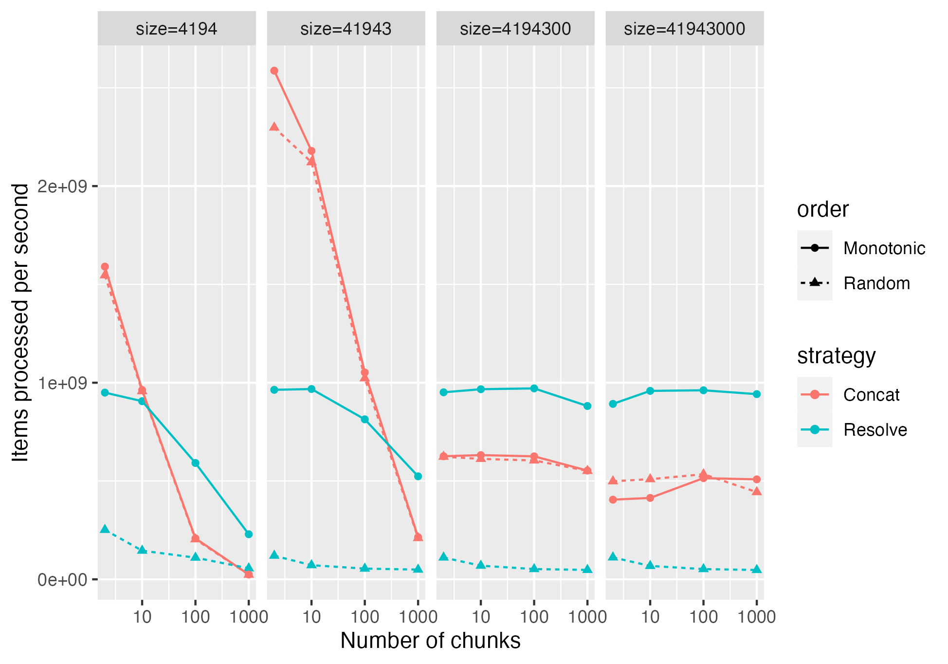 > @wjones127 These numbers are for the random or monotonic use case? That's for random. Here is it including monotonic, which makes it more complex:  So it seems like it's better in the monotonic case, but worse in the random case. > Are these results measured without the extra overhead of the temporary std::vector for the ChunkResolver case? I hadn't removed it. Removed it in the test that I'm showing results for above. > The ChunkResolver is the most general solution with least overhead on memory use and still reasonable performance. In some cases it seems like it would be a serious regression; so I'm trying to figure out which cases those are if we can avoid using ChunkResolver in those cases. It's hard to say if that extra memory usage is that significant. I feel like some extra memory usage will always happen within compute function. This is large since it needs to operate on the entire chunk, rather than just a chunk at a time. But also with memory pools we can rapidly reuse memory; so I imagine for example if we are running `Take()` on a Table with multiple string columns, the memory used temporarily for the first one could be re-used when processing the second. -- This is an automated message from the Apache Git Service. To respond to the message, please log on to GitHub and use the URL above to go to the specific comment. To unsubscribe, e-mail: [email protected] For queries about this service, please contact Infrastructure at: [email protected]