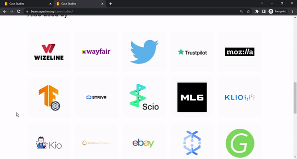 - add function that shuffles logos on [case-study page](https://beam.apache.org/case-studies/) ------------------------ before:  after:  ------------------------ Thank you for your contribution! Follow this checklist to help us incorporate your contribution quickly and easily: - [ ] [**Choose reviewer(s)**](https://beam.apache.org/contribute/#make-your-change) and mention them in a comment (`R: @username`). - [ ] Mention the appropriate issue in your description (for example: `addresses #123`), if applicable. This will automatically add a link to the pull request in the issue. If you would like the issue to automatically close on merging the pull request, comment `fixes #<ISSUE NUMBER>` instead. - [ ] Update `CHANGES.md` with noteworthy changes. - [ ] If this contribution is large, please file an Apache [Individual Contributor License Agreement](https://www.apache.org/licenses/icla.pdf). See the [Contributor Guide](https://beam.apache.org/contribute) for more tips on [how to make review process smoother](https://beam.apache.org/contribute/get-started-contributing/#make-the-reviewers-job-easier). To check the build health, please visit [https://github.com/apache/beam/blob/master/.test-infra/BUILD_STATUS.md](https://github.com/apache/beam/blob/master/.test-infra/BUILD_STATUS.md) GitHub Actions Tests Status (on master branch) ------------------------------------------------------------------------------------------------ [](https://github.com/apache/beam/actions?query=workflow%3A%22Build+python+source+distribution+and+wheels%22+branch%3Amaster+event%3Aschedule) [](https://github.com/apache/beam/actions?query=workflow%3A%22Python+Tests%22+branch%3Amaster+event%3Aschedule) [](https://github.com/apache/beam/actions?query=workflow%3A%22Java+Tests%22+branch%3Amaster+event%3Aschedule) [](https://github.com/apache/beam/actions?query=workflow%3A%22Go+tests%22+branch%3Amaster+event%3Aschedule) See [CI.md](https://github.com/apache/beam/blob/master/CI.md) for more information about GitHub Actions CI. -- This is an automated message from the Apache Git Service. To respond to the message, please log on to GitHub and use the URL above to go to the specific comment. To unsubscribe, e-mail: [email protected] For queries about this service, please contact Infrastructure at: [email protected]