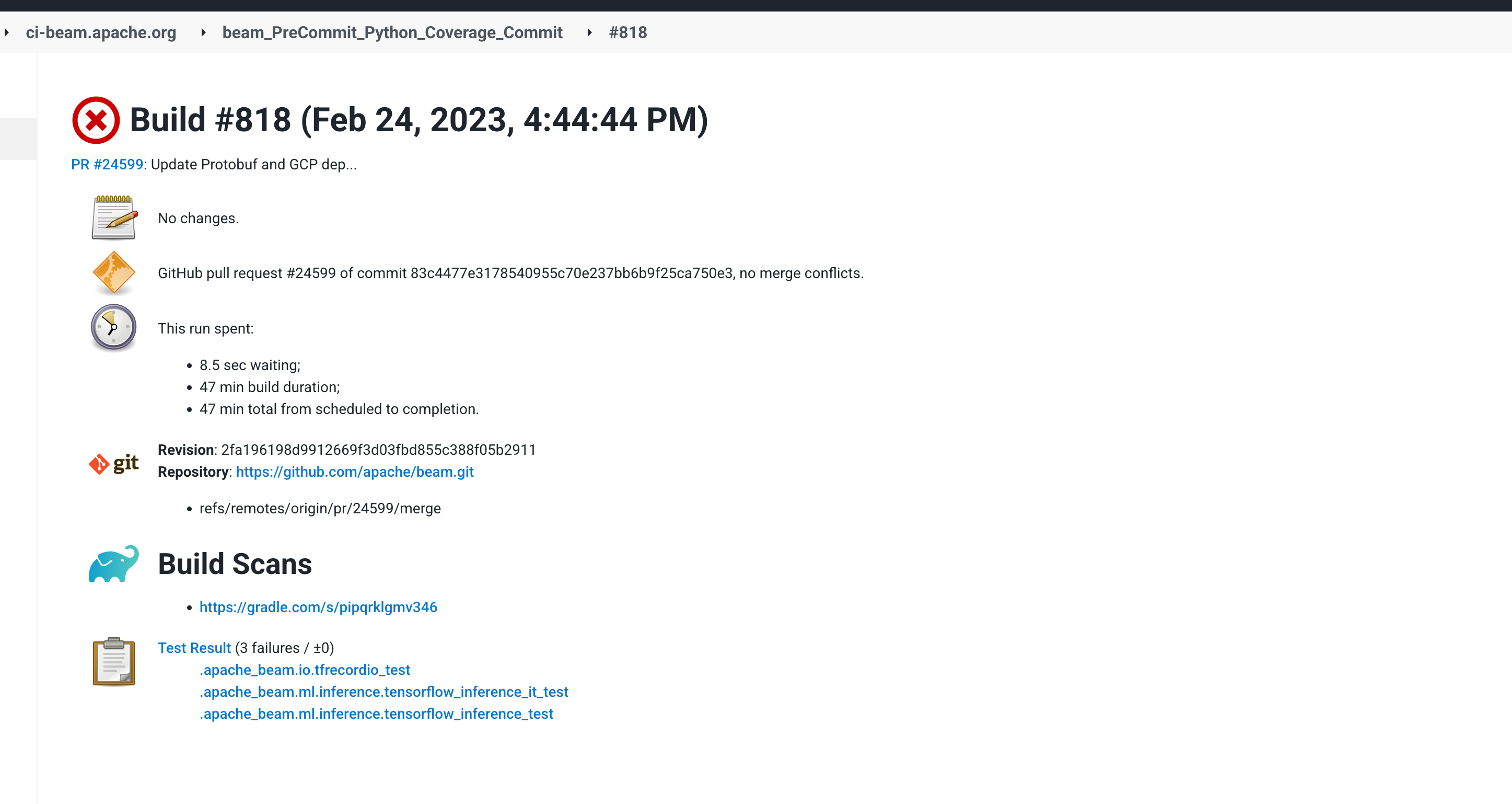 These three tests will be passed once tensorflow 2.12 is released. We can wait until Feb 28th. -- This is an automated message from the Apache Git Service. To respond to the message, please log on to GitHub and use the URL above to go to the specific comment. To unsubscribe, e-mail: [email protected] For queries about this service, please contact Infrastructure at: [email protected]