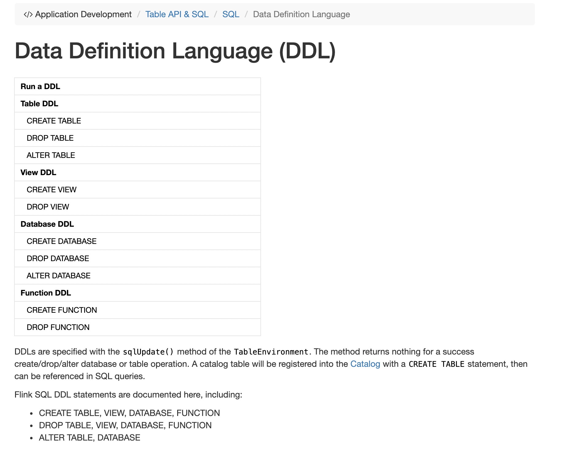 wuchong commented on issue #10669: [FLINK-15192][docs][table] Split 'SQL' page into multiple sub pages for better readability URL: https://github.com/apache/flink/pull/10669#issuecomment-569008635 The new DDL page structure:  The new DML page structure: