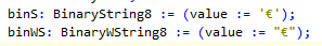 I noticed that PLC4X uses UTF-8 encoding to read/write strings to ADS devices. According to [Beckhoffs documentation](https://infosys.beckhoff.com/content/1033/tc3_plc_intro/2529327243.html?id=4470464088993876920), the correct encoding for `STRING` variables is Windows-1252. I created a demo program in TwinCAT 3, with a string value being set to the Euro-sign:   _Note: `BinaryString8` is a union type, consisting of a string and a byte array, which allows me to see the binary data representing the string. For comparison, there's also a version with a `WSTRING`, which is encoded using UTF-16._ As you can see, the Euro-sign is encoded as 128 (`0x80`), while [in UTF-8 it should be `0xe282ac`](https://www.fileformat.info/info/unicode/char/20ac/index.htm). -- This is an automated message from the Apache Git Service. To respond to the message, please log on to GitHub and use the URL above to go to the specific comment. To unsubscribe, e-mail: [email protected] For queries about this service, please contact Infrastructure at: [email protected]