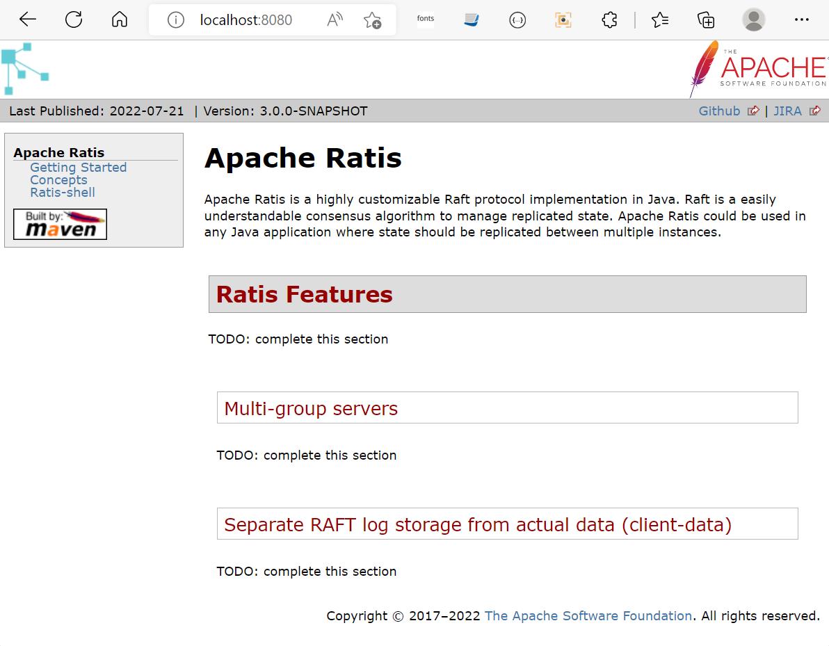 ## What changes were proposed in this pull request? This patch replaced Hugo with maven site plugin to generate documents in ratis-doc module. Previously, using Hugo reqiures the user to install Hugo, and also it's not compatible to execute bash script in Windows platform. ## What is the link to the Apache JIRA https://issues.apache.org/jira/browse/RATIS-1630 ## How was this patch tested? No code change. This patch is document only, and here's a screenshot of the rendered document:  -- This is an automated message from the Apache Git Service. To respond to the message, please log on to GitHub and use the URL above to go to the specific comment. To unsubscribe, e-mail: [email protected] For queries about this service, please contact Infrastructure at: [email protected]