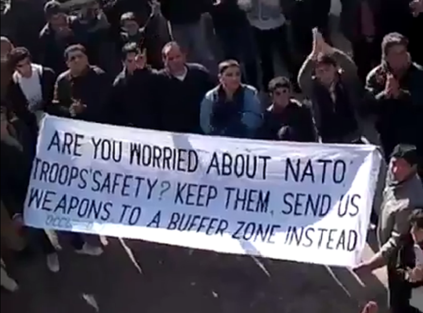 This video is said to show a protest in the town of al-Habet in Idlib on Saturday. One of the banners reads: "special offer - with every 50 observers, 100 killed protesters. Valid till the killing of all Syrians." http://www.youtube.com/watch?v=1ukoxGx-J6c&feature=player_embedded